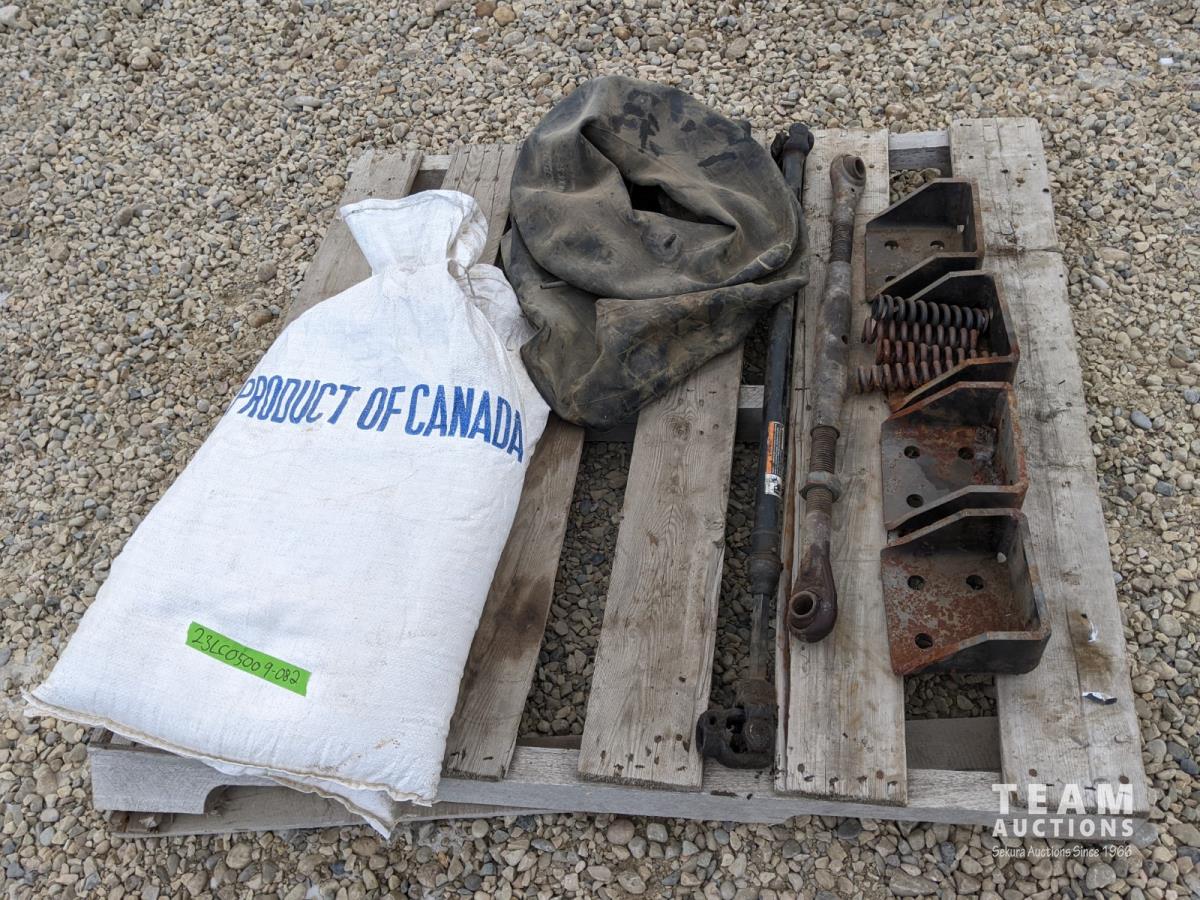 (4) steel brackets, 3 PT top link, small PTO shaft, (2) inner tubes, (2) bags of sawdust