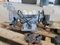 Roll of 3/8 air hose, Trademaster 6 inch bench grinder, tow ropes, straps, come-a-long, bolt cutter and chain pliers