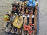 Subaru 1 inch pump, Century single phase motor, Black & Decker angle grinder, propane torch