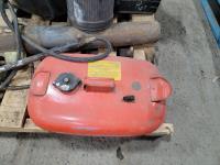 Gooseneck ball hitch, straps, marine fuel tank, propane torch, antique gas can, rubber bucket, straps, slings, jerry cans