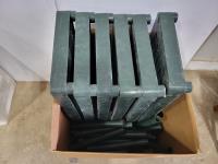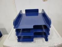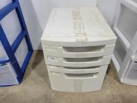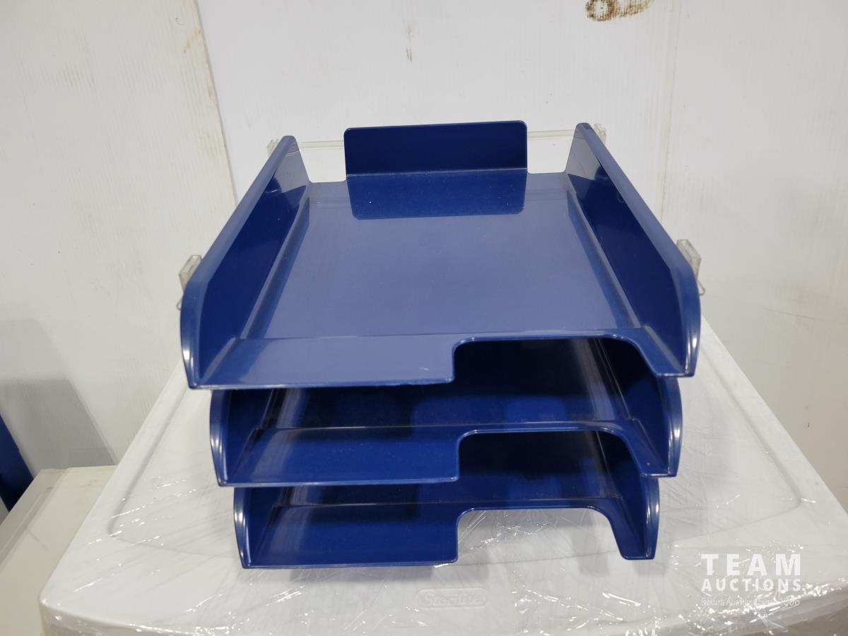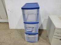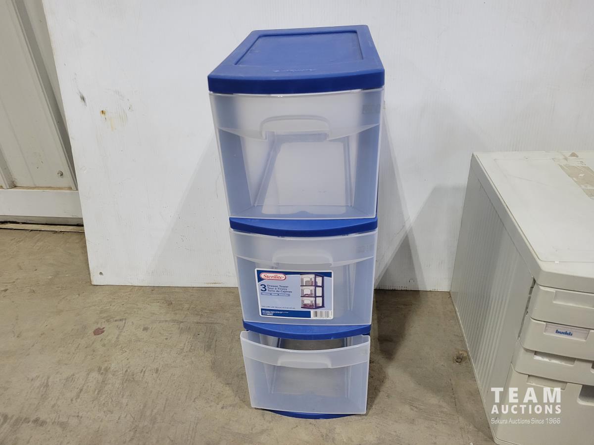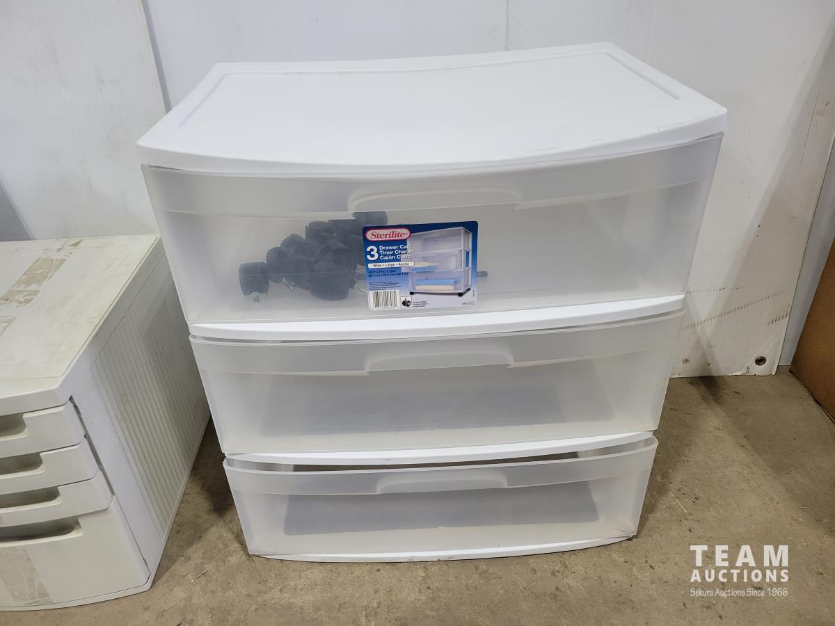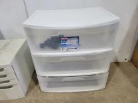 Green poly shelving, platic drawer towers, desk organizer