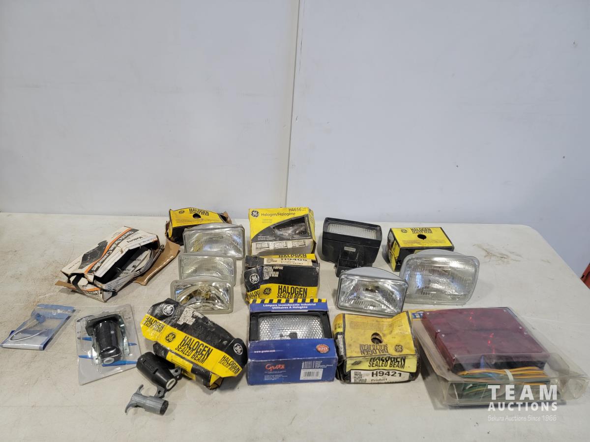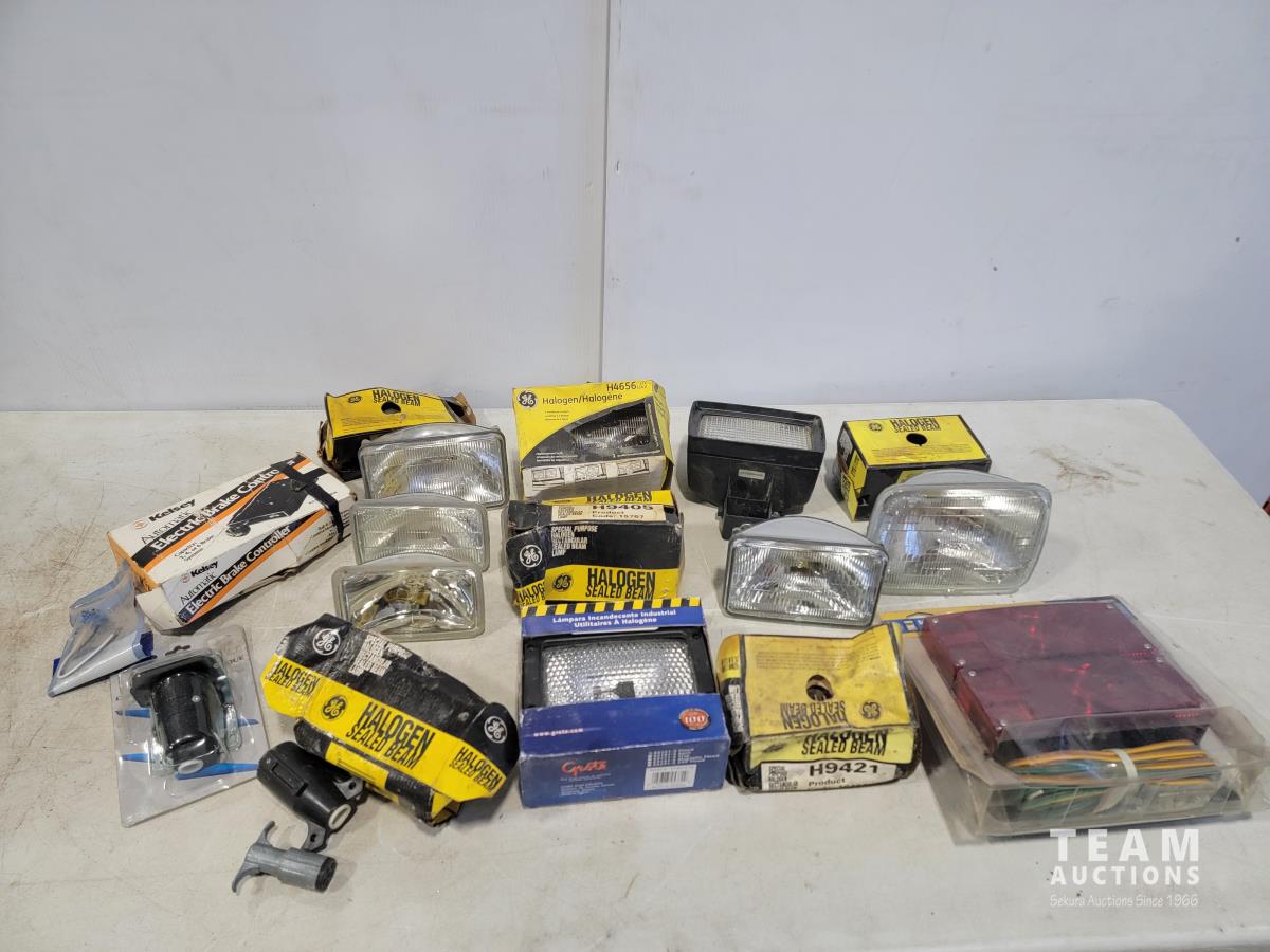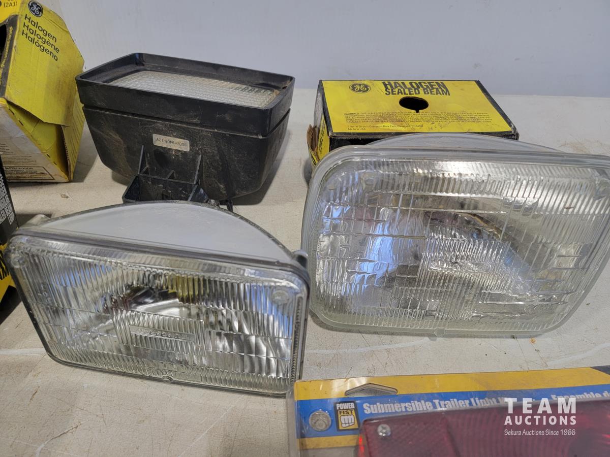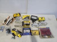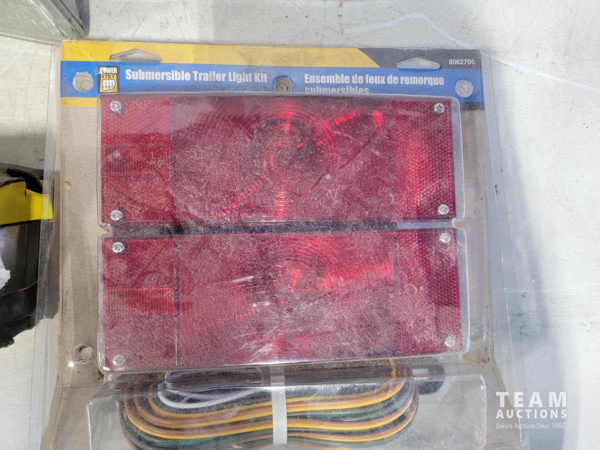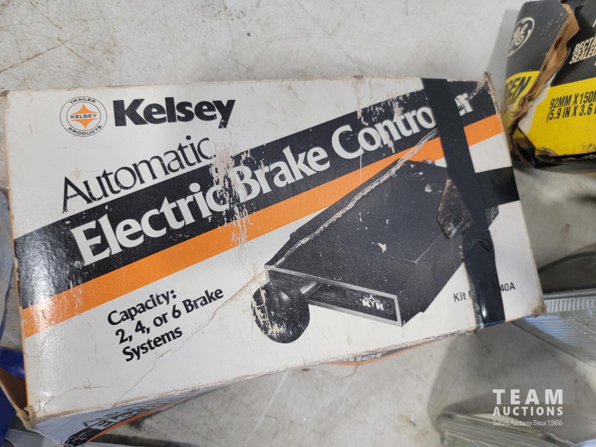 Electric brake control, assortment of halogen lights, submersible trailer light kit and trailer connector