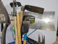 Garden hoes, rake, ice chipper, shovel
