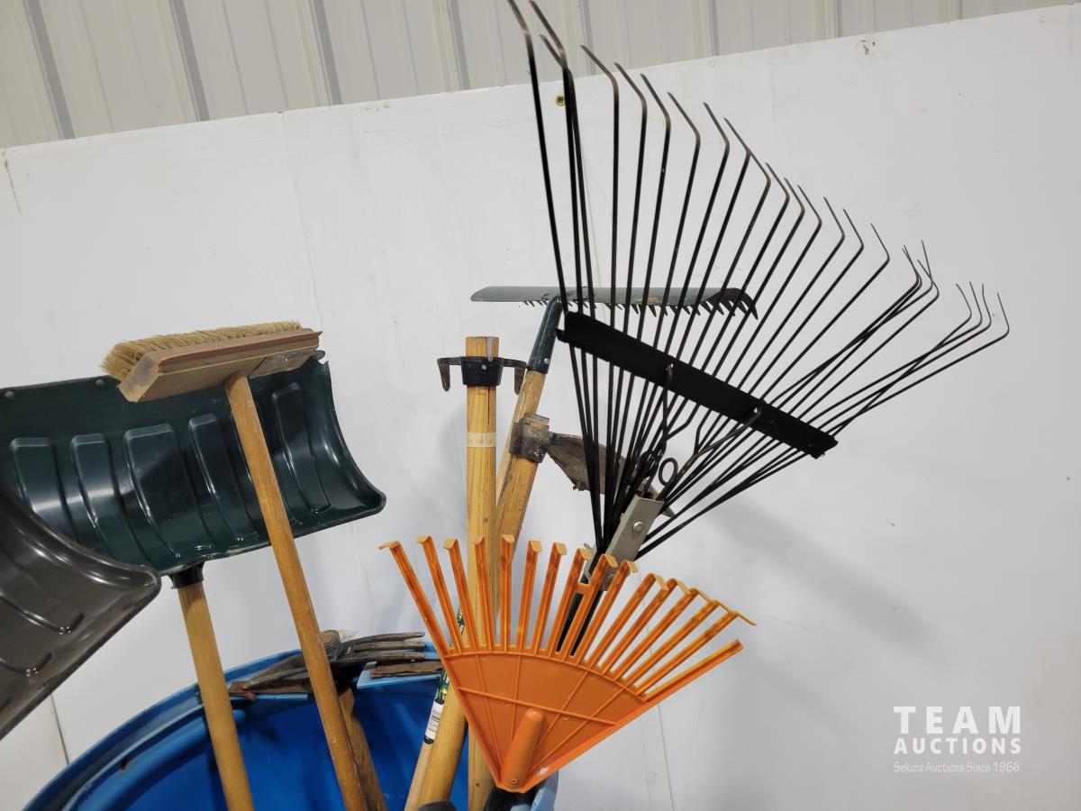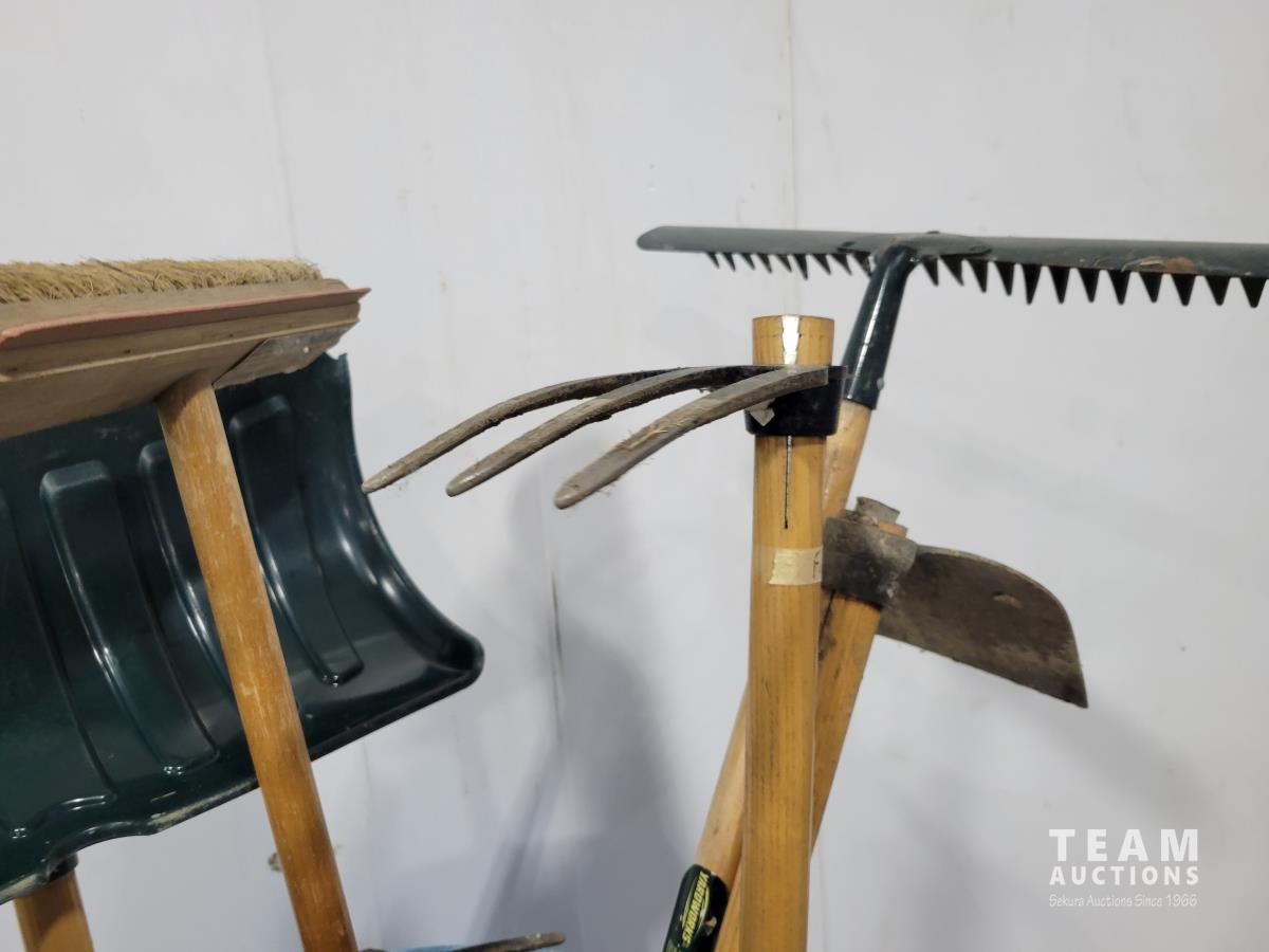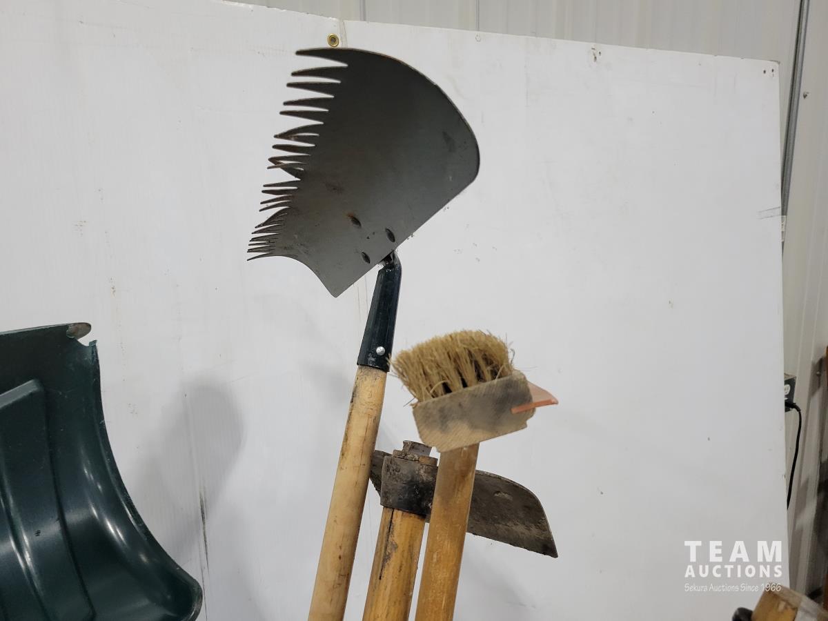 Snow shovels, rakes, garden hoes, weeding tool