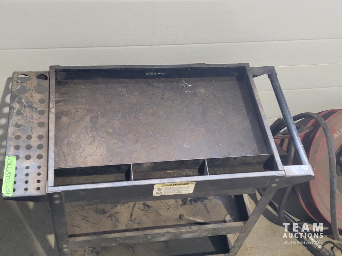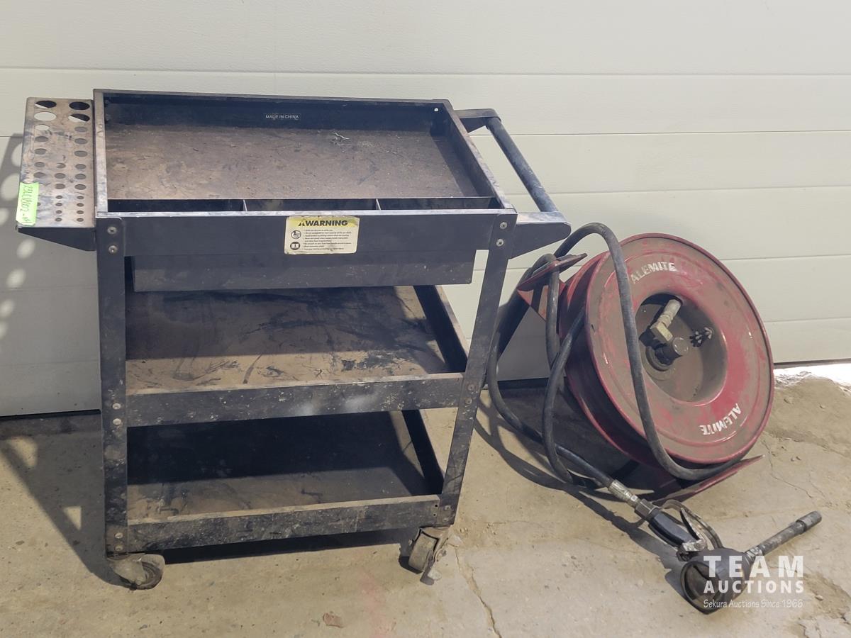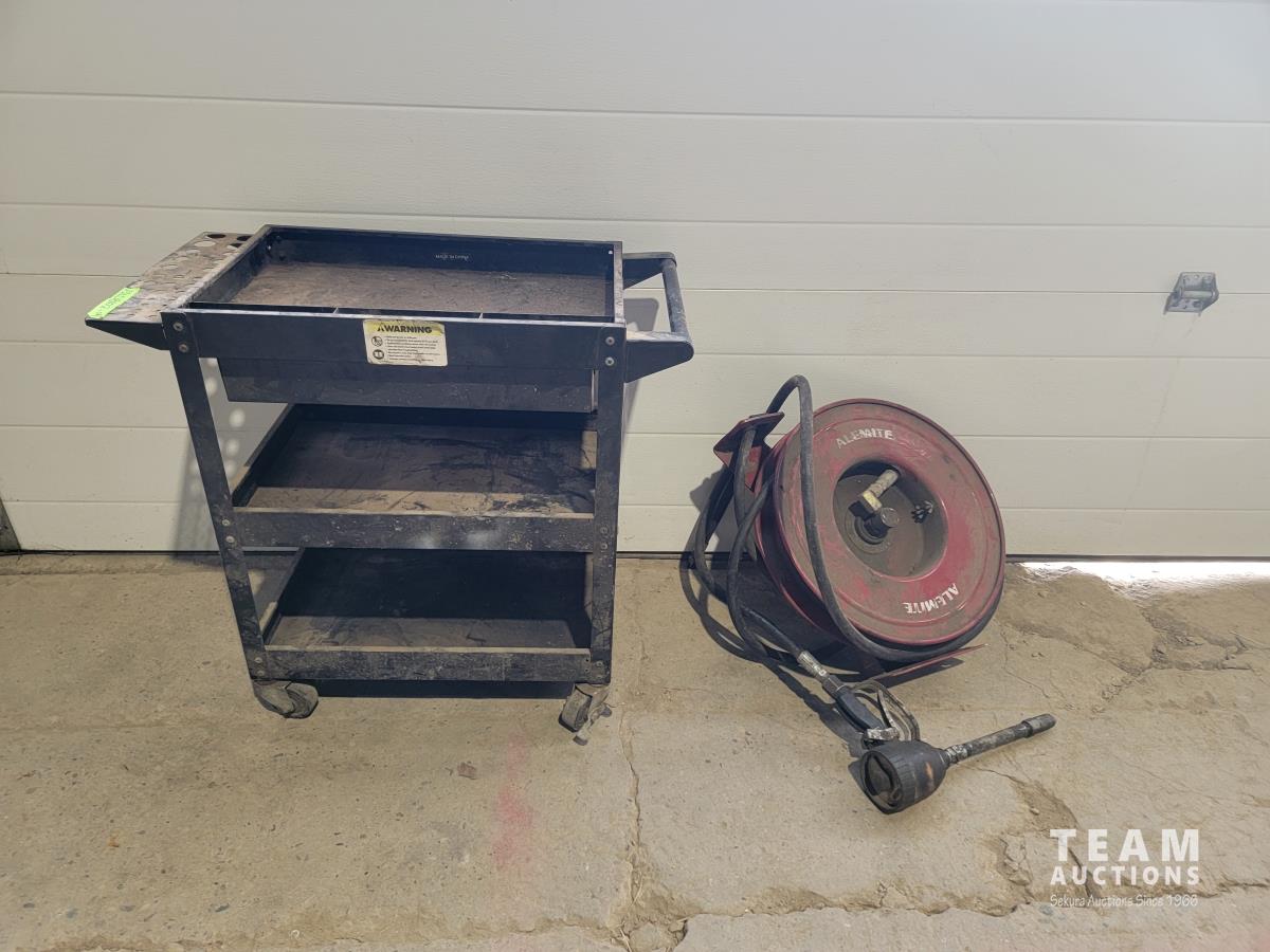 1116 Shop Cart with Drawer and Alemite Reel with Oil Dispensing Hose with Nozzle