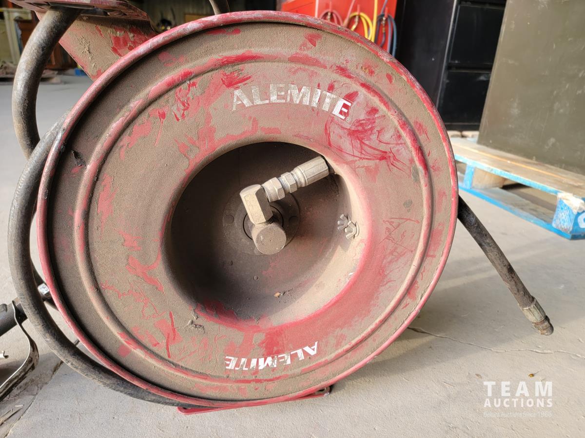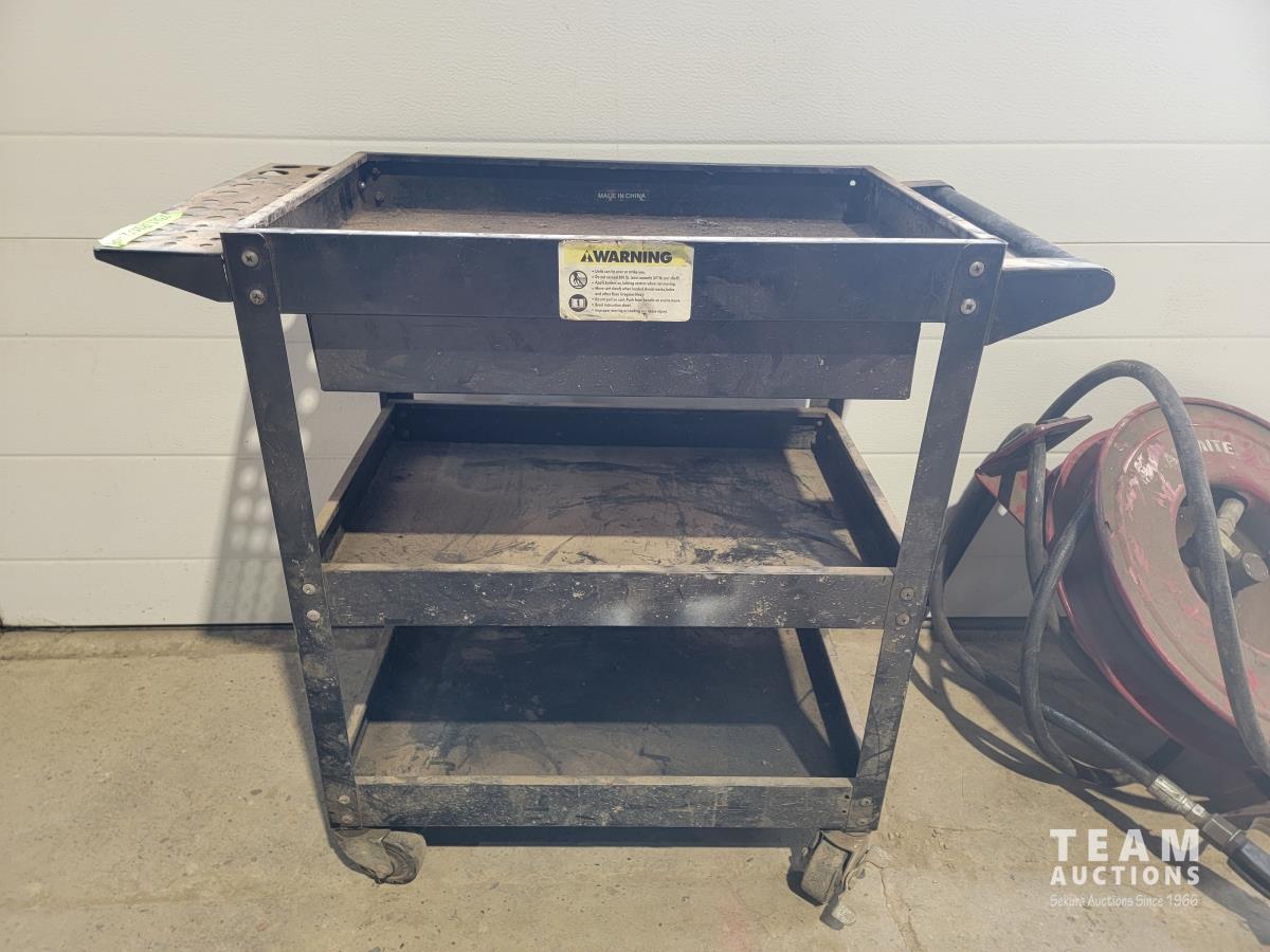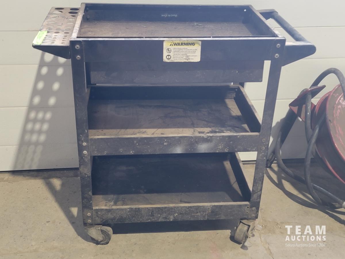 1116 Shop Cart with Drawer and Alemite Reel with Oil Dispensing Hose with Nozzle
