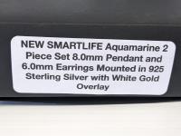 1788 SMARTLIFE Aquamarine 8.0mm Pendant and 6.0mm Earrings (Unused)