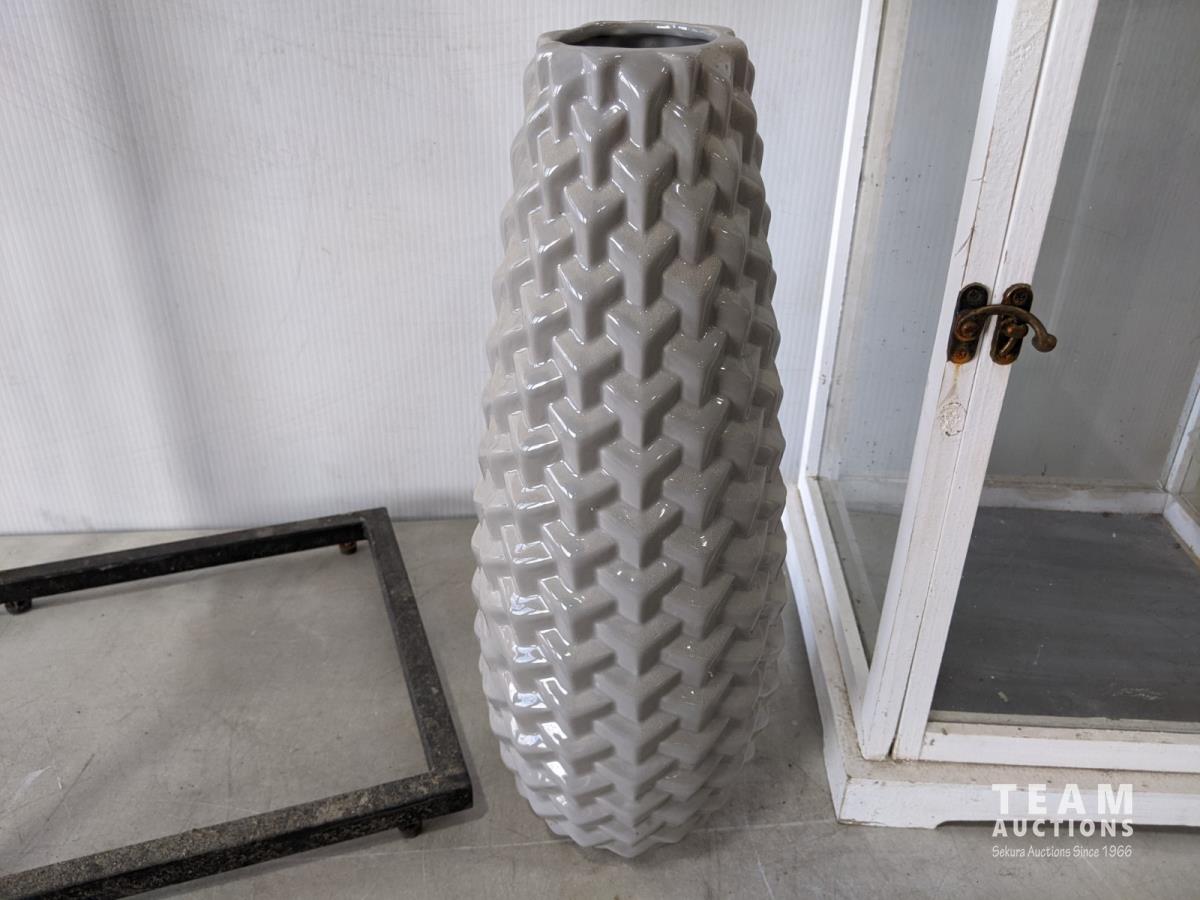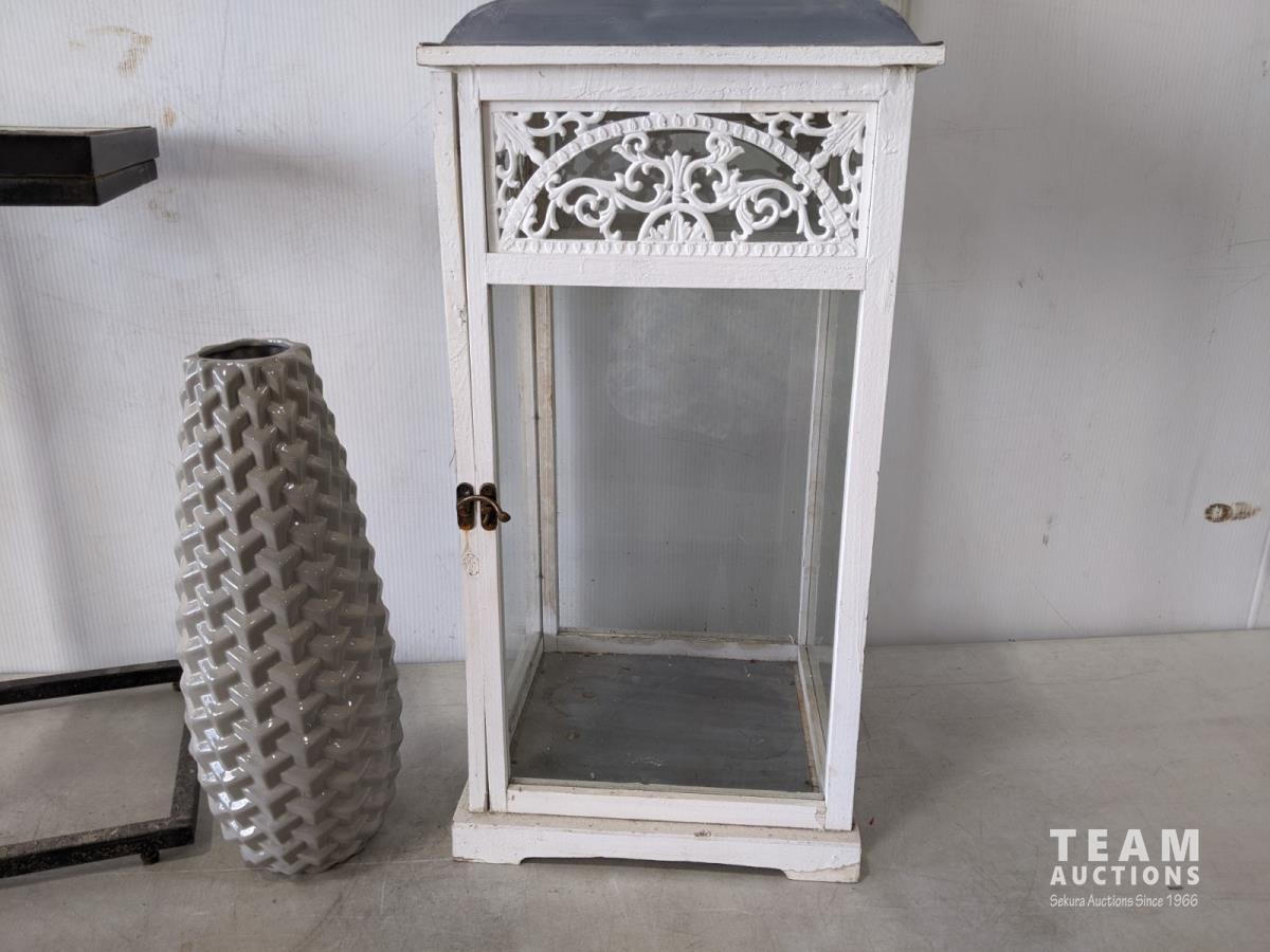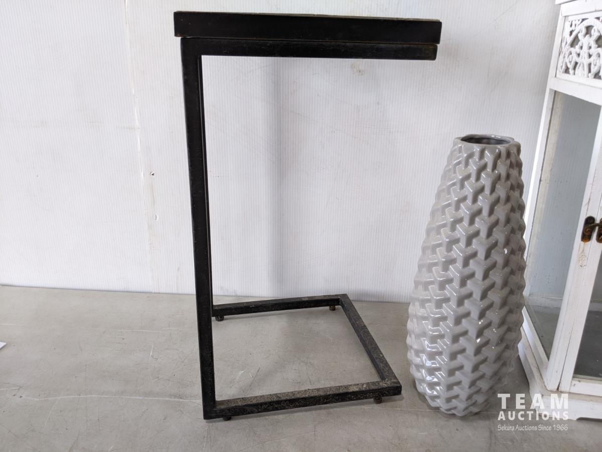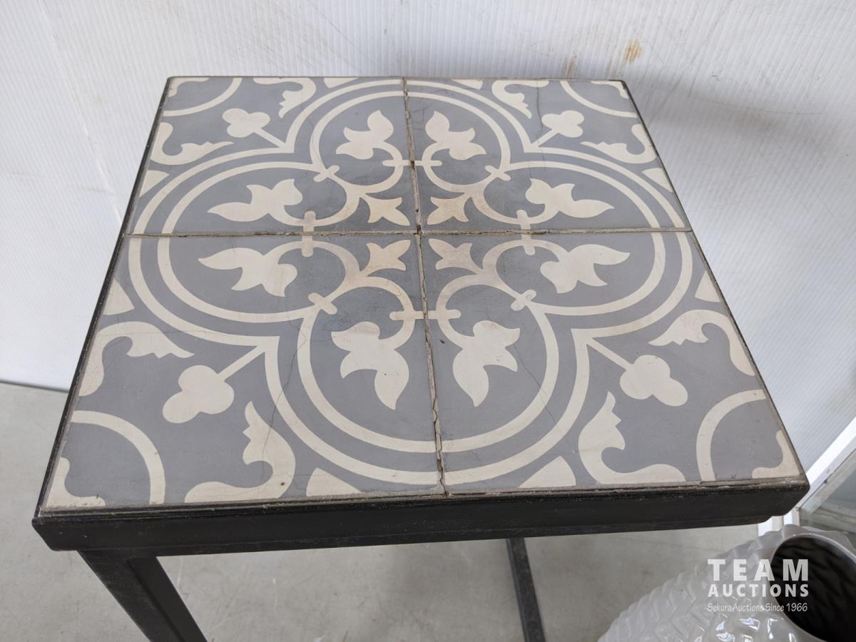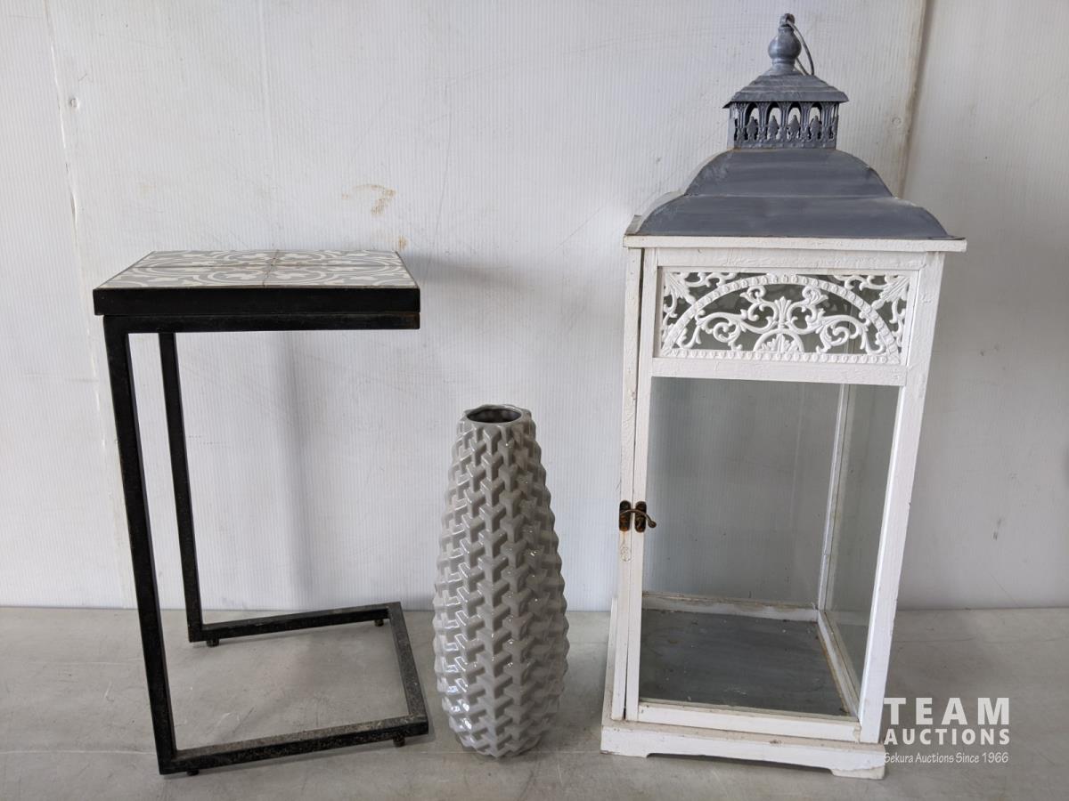 1429 Tiled Top Side Table, Decorative Vase, 3 Ft Lantern