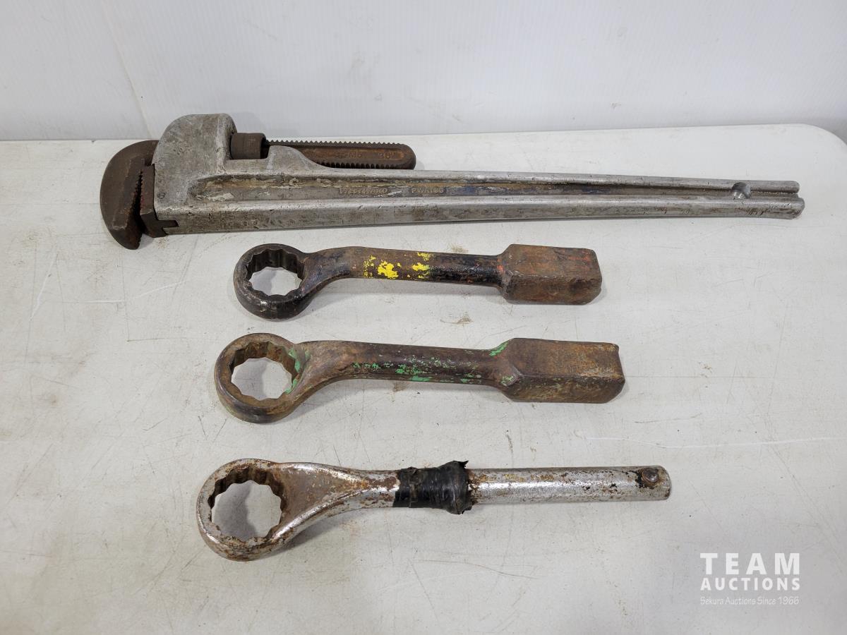 1413 Westward 36 Inch Pipe Wrench and (3) 1-13/16 Inch Hammer Wrenches