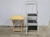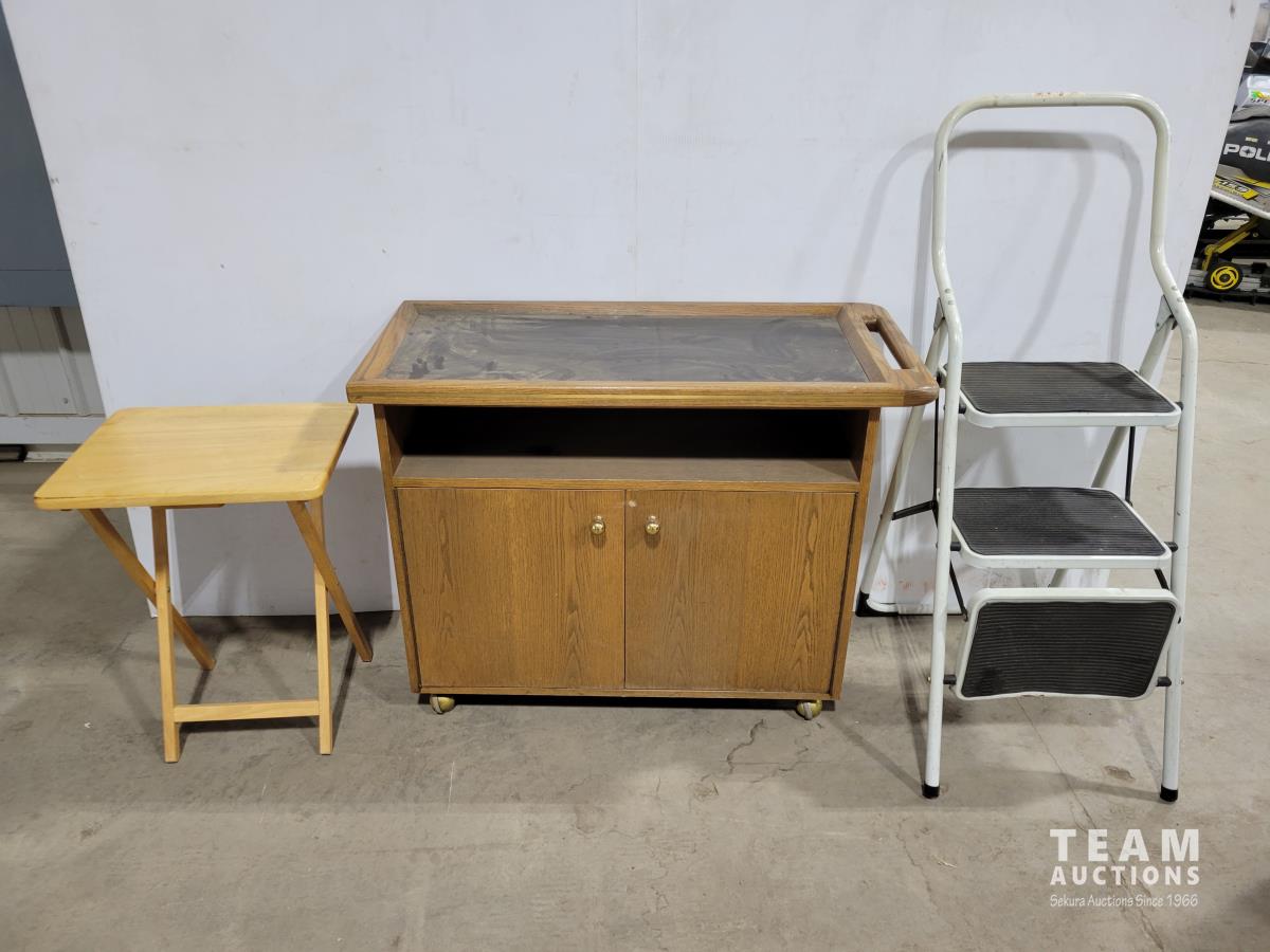 1185 Wheeled Bar Cabinet, TV Tray and 3 Step Ladder
