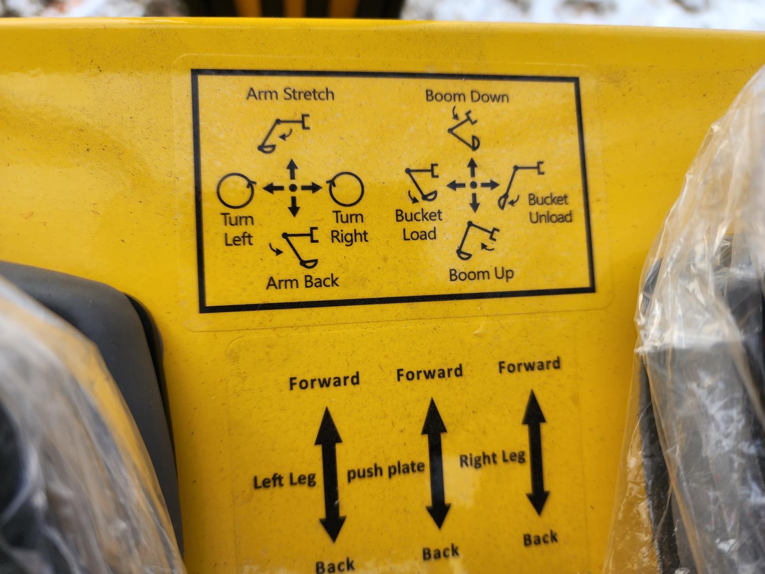 Open station, pilot controls, Briggs & Stratton 13.5 HP gas engine, LED work lights, 15 inch dig bucket, manual coupler, manual thumb, 1 auxiliary hydraulics, 2 Ft 7 inch stick, swing boom, backfill blade, 7 inch rubber tracks