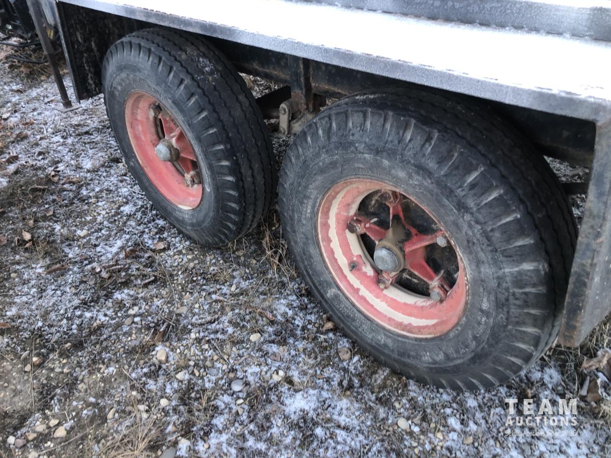 62 inch wide deck, wood deck, spring suspension, ball hitch, pipe frame, shop built, 8-14.5 tires