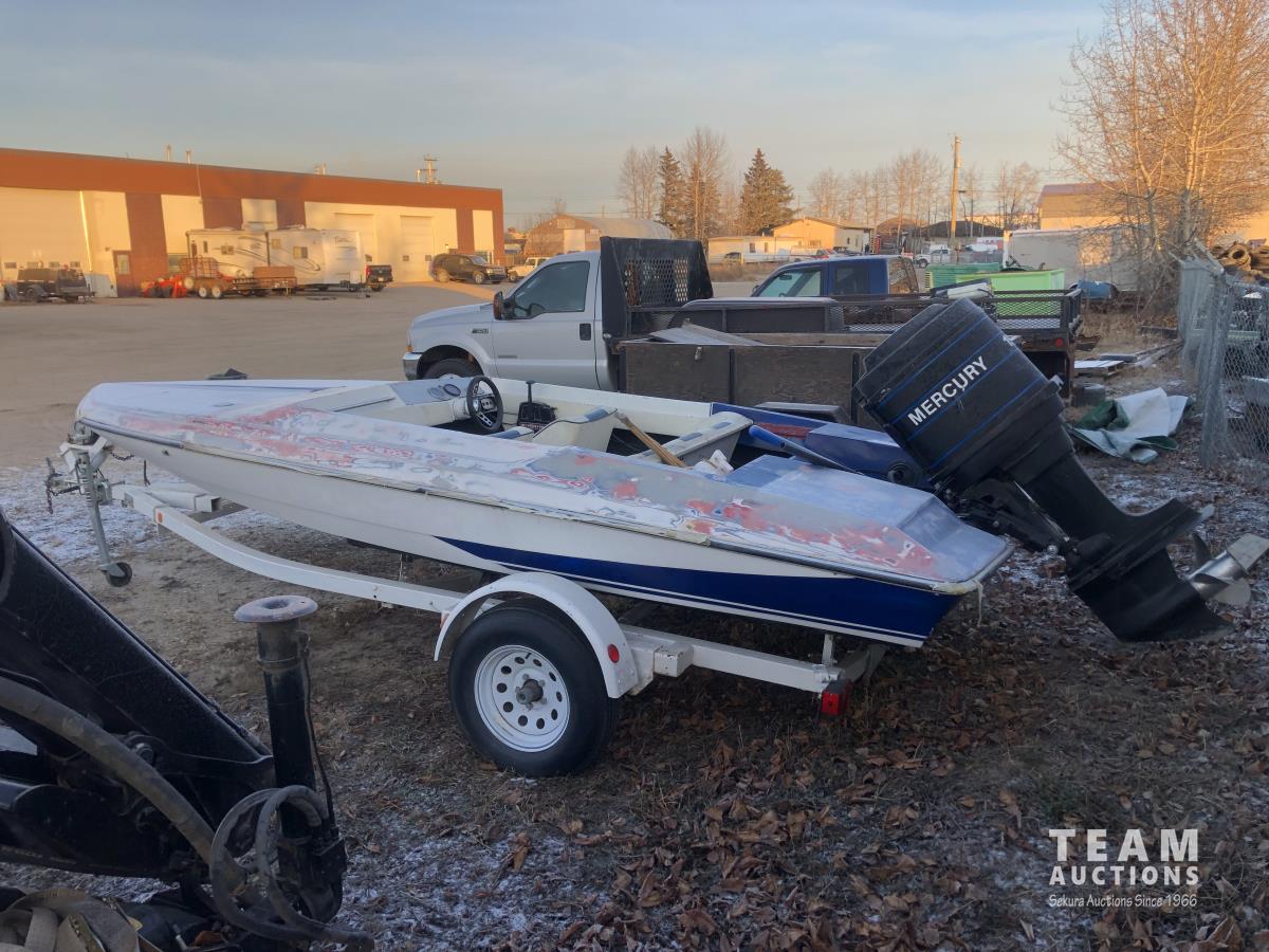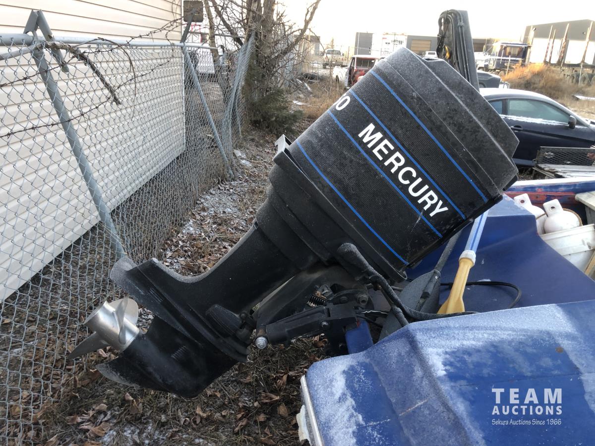 Mercury 150 outboard motor, hand winch, trailer jack, paddles