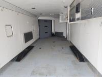 98 inch interior width, 81 inch interior height, ball hitch, side door, fold down door, spring suspension, man door, onboard fuel station, heater, radio, storage cupboards, 3500 lb axles, 205/75R15 tires