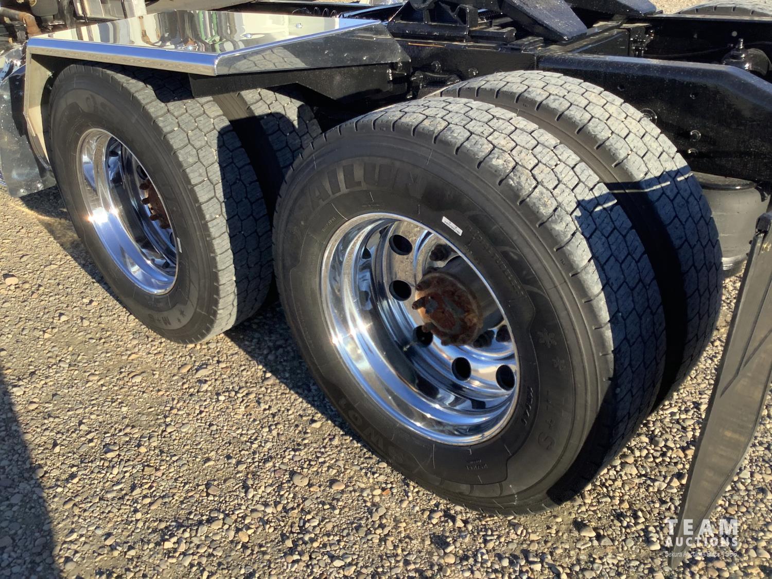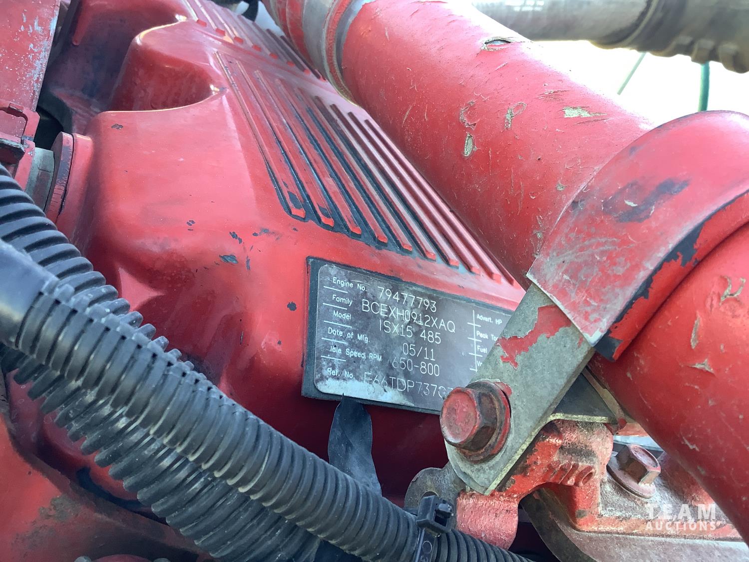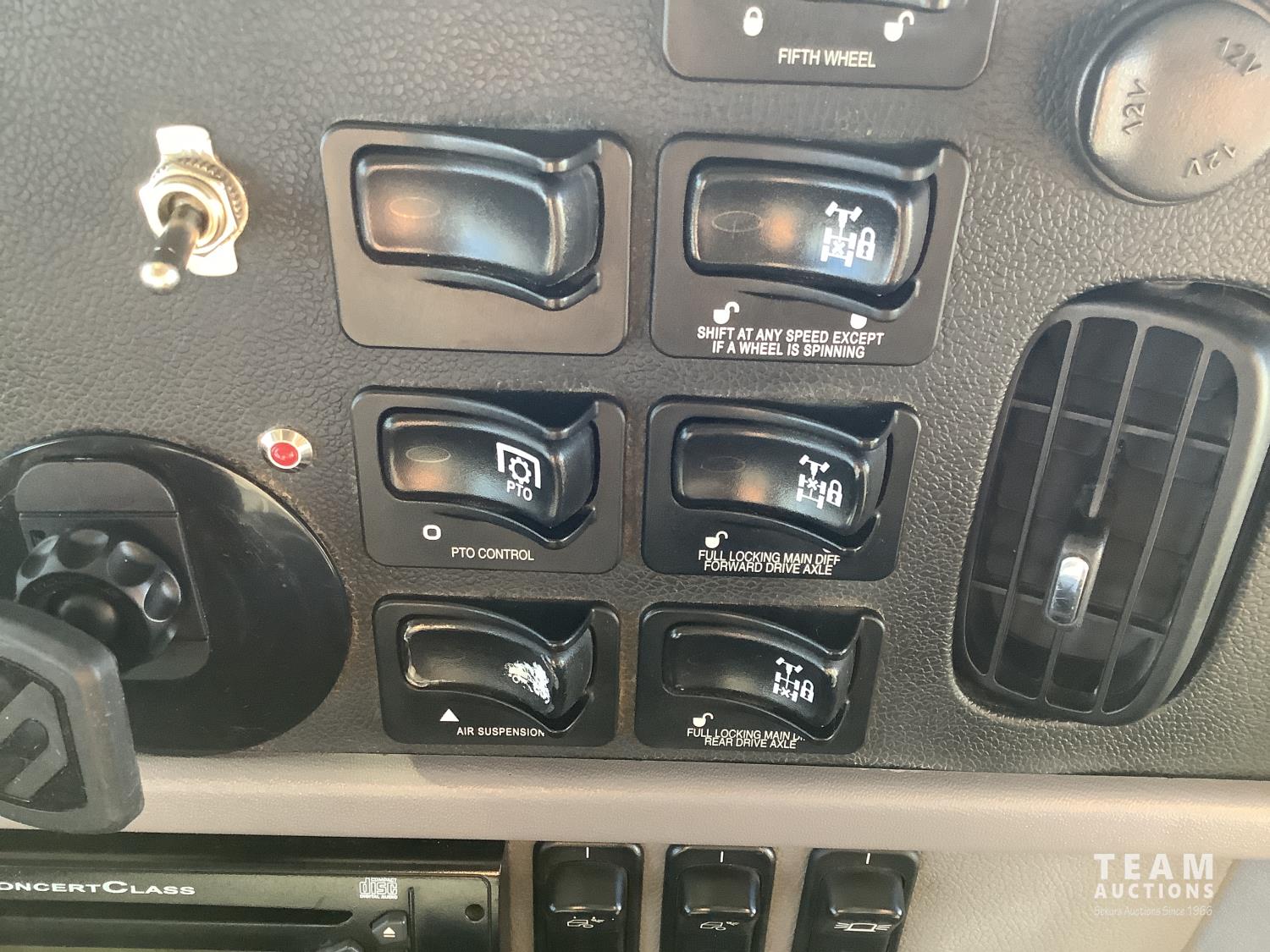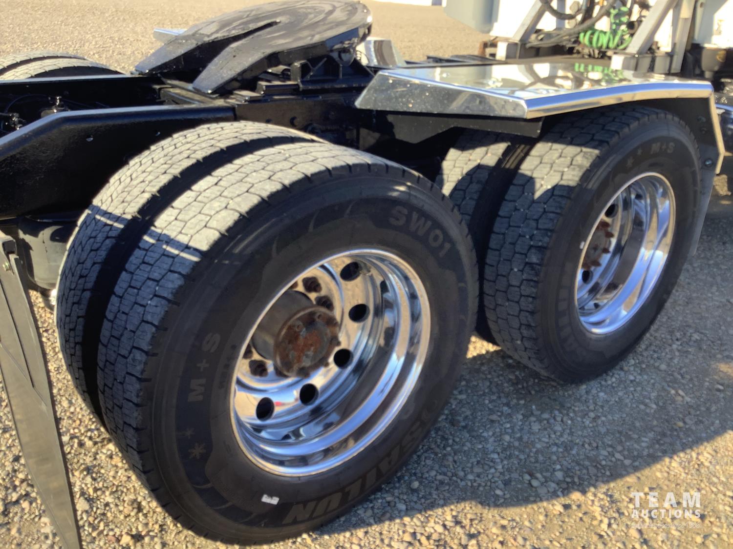 Cummins ISX 485 HP engine, Webasto engine heater, emissions deleted, Eaton Fuller 18 speed manual transmission, cab heater, removable 63 inch sleeper, mounted 2 way hydraulic system, air ride suspension, 12,300 lb front axle, 46,000 lb rear axles, full lockers, 11R24.5 tires