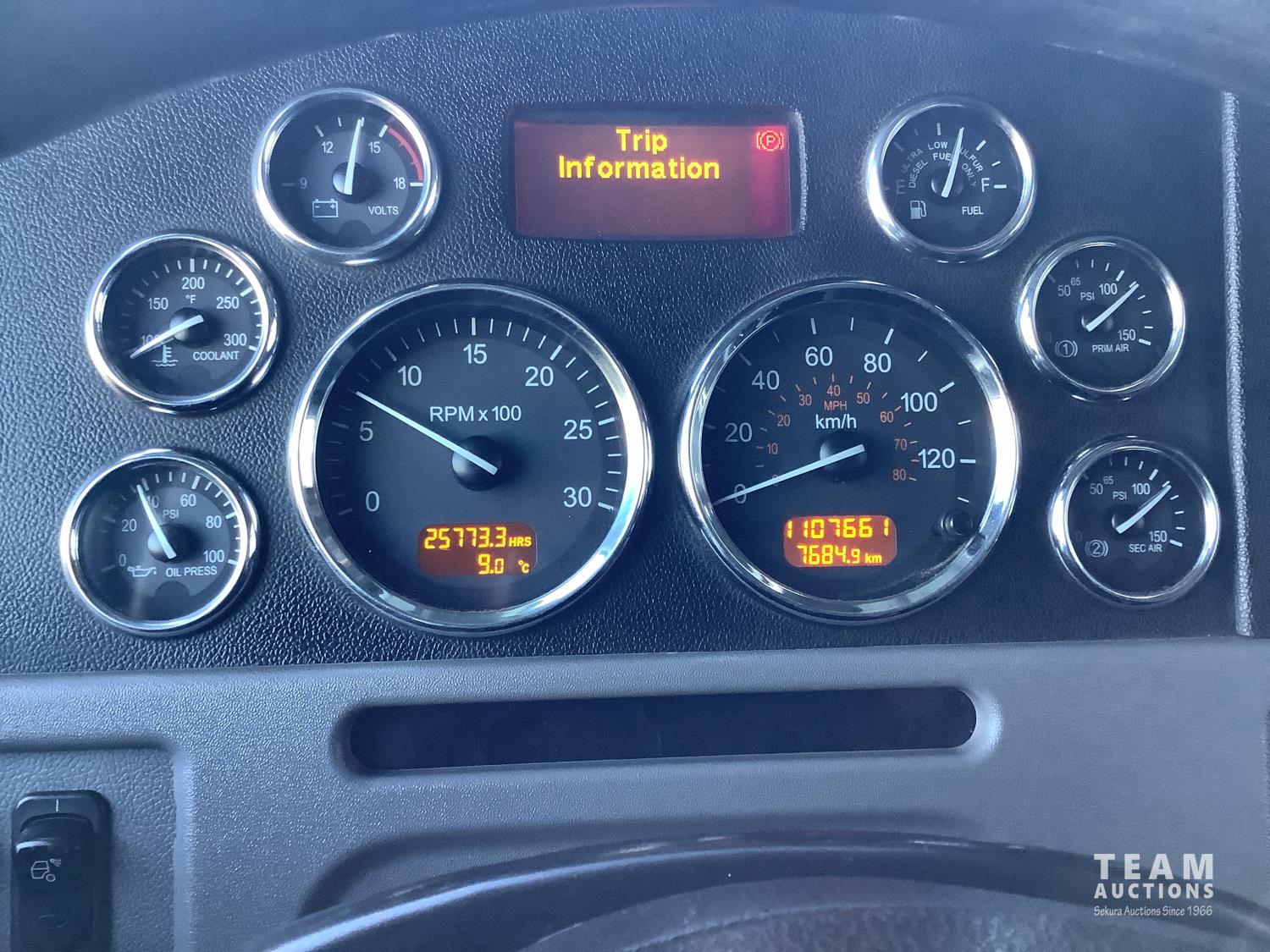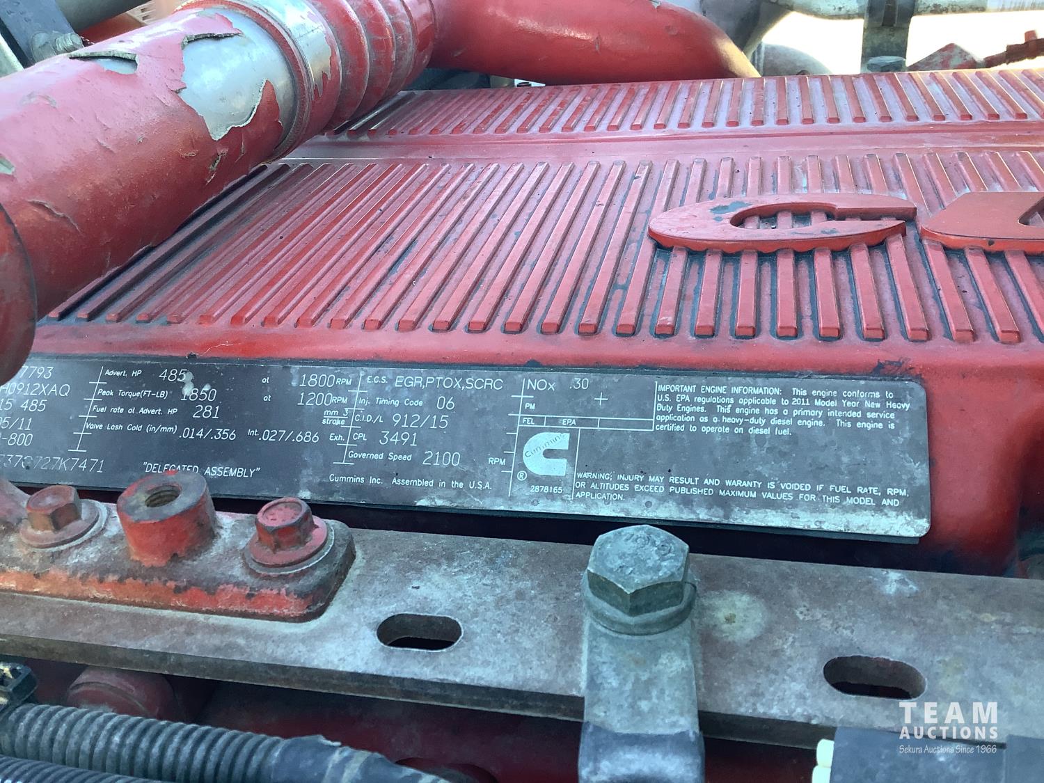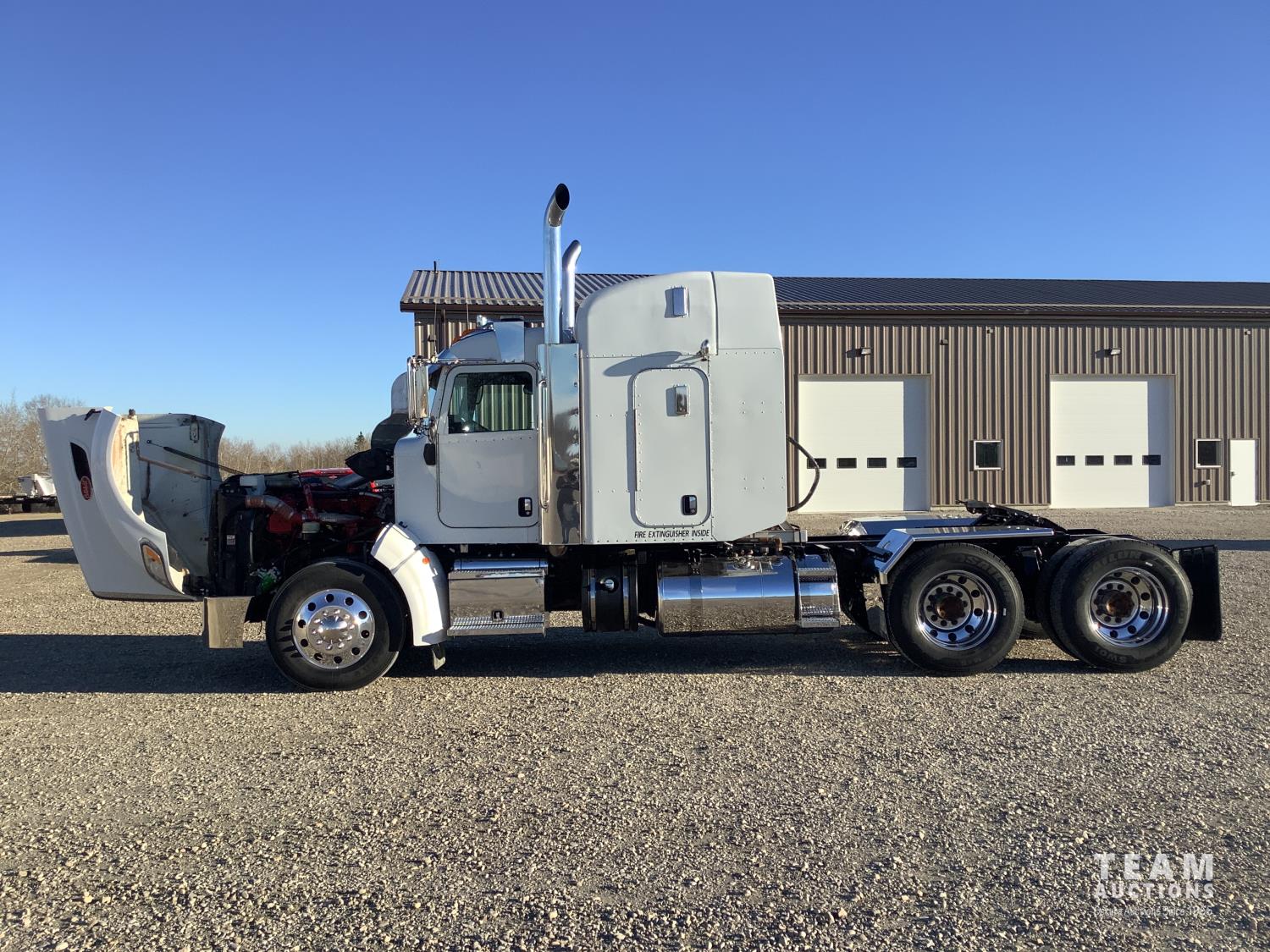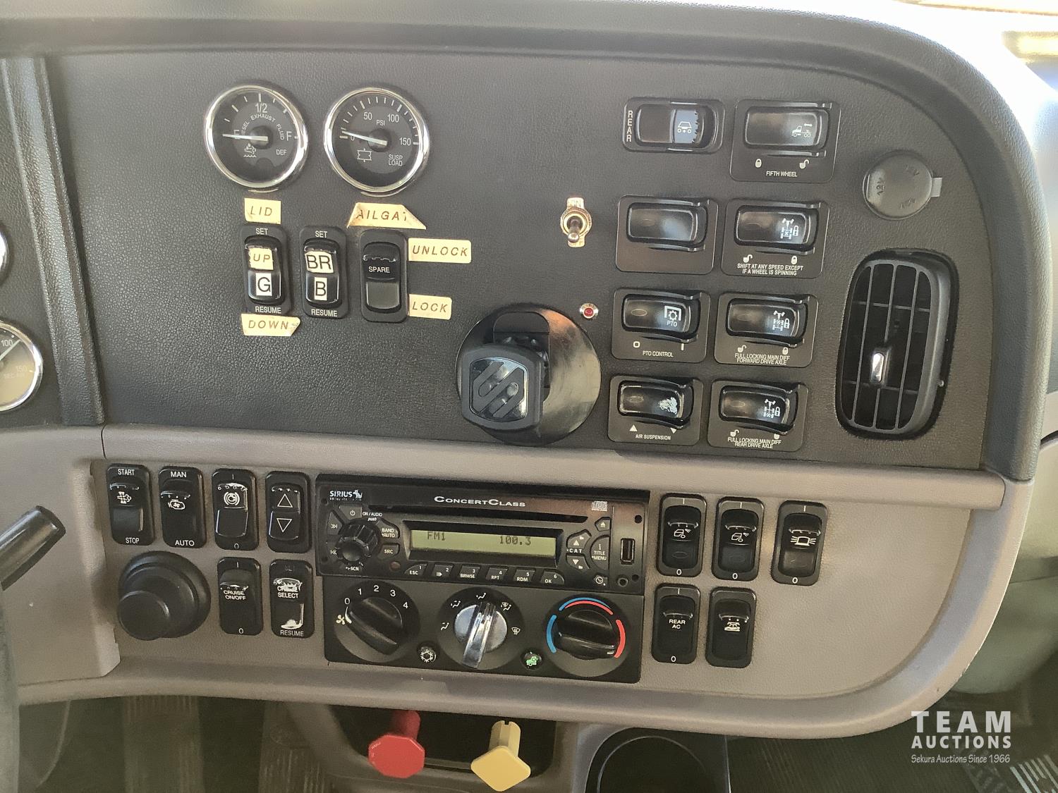 Cummins ISX 485 HP engine, Webasto engine heater, emissions deleted, Eaton Fuller 18 speed manual transmission, cab heater, removable 63 inch sleeper, mounted 2 way hydraulic system, air ride suspension, 12,300 lb front axle, 46,000 lb rear axles, full lockers, 11R24.5 tires