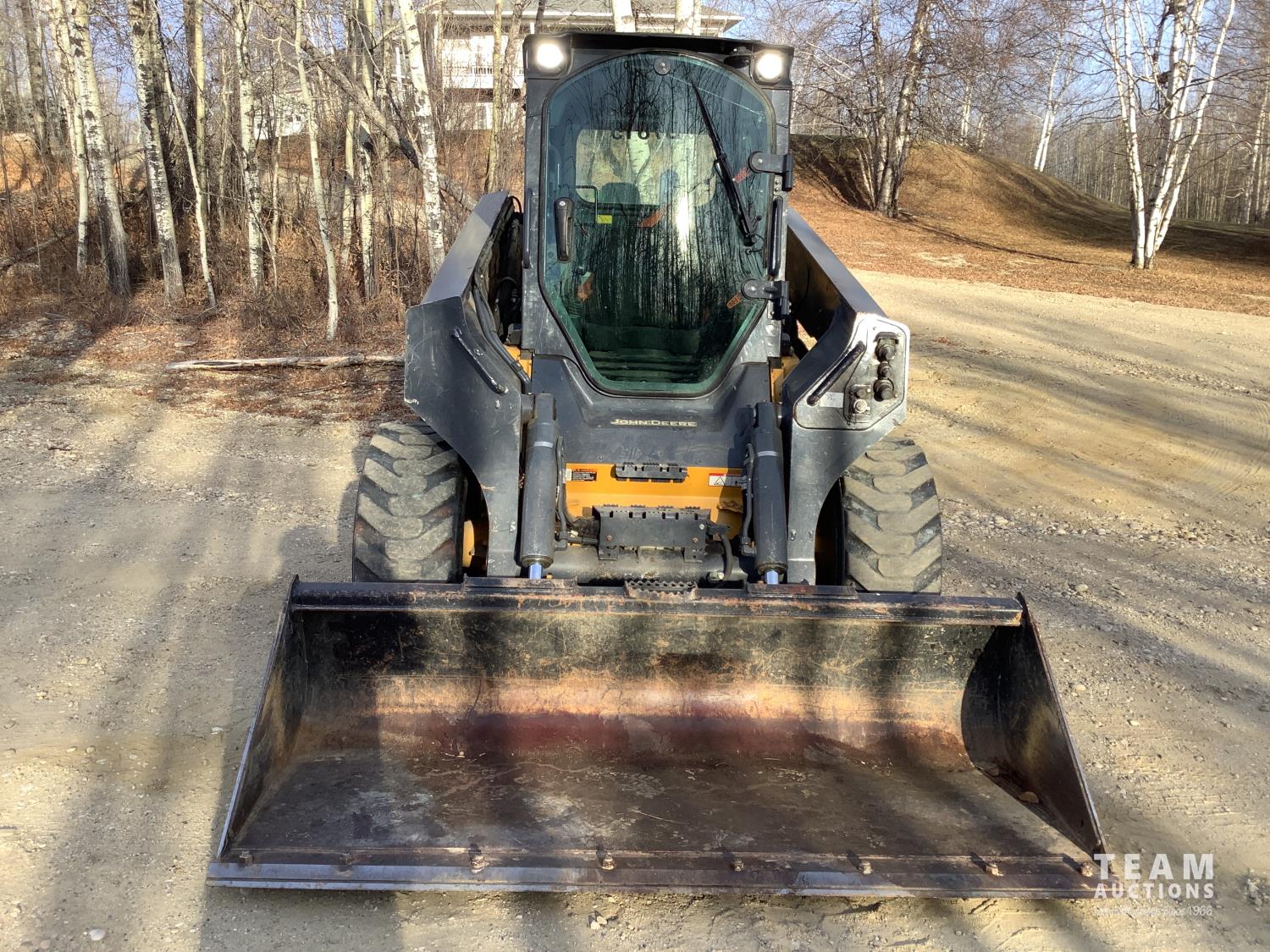 cab, A/C, heater, radio, 2 speed transmission, 84 inch JD bucket, camera, 3rd hydraulic couplers, tire chains, 4-17.5 tires