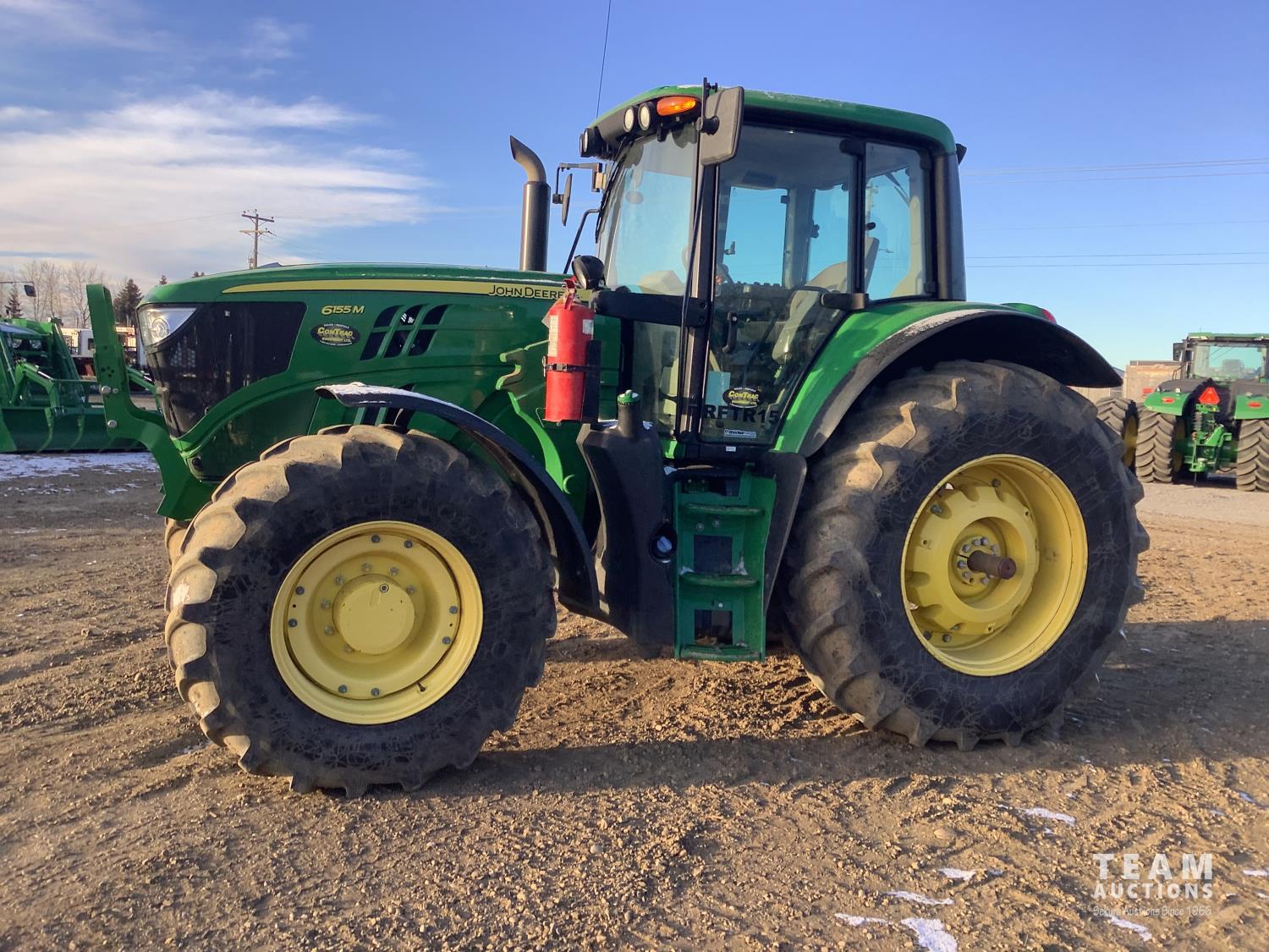 John Deere loader mounts, John Deere 6.8 L 6 cylinder 155 HP, engine, 123 PTO HP, 12 speed Power Quad partial power shift transmission, cab, left hand reverser, joystick, A/C, radio, buddy seat, grill guard, 540/1000 PTO, 3 point hitch, 3 rear hydraulic outlets, rear wheel weights, track weights, 420/85R28 front tires, 20.8R38 rear tires, front fenders