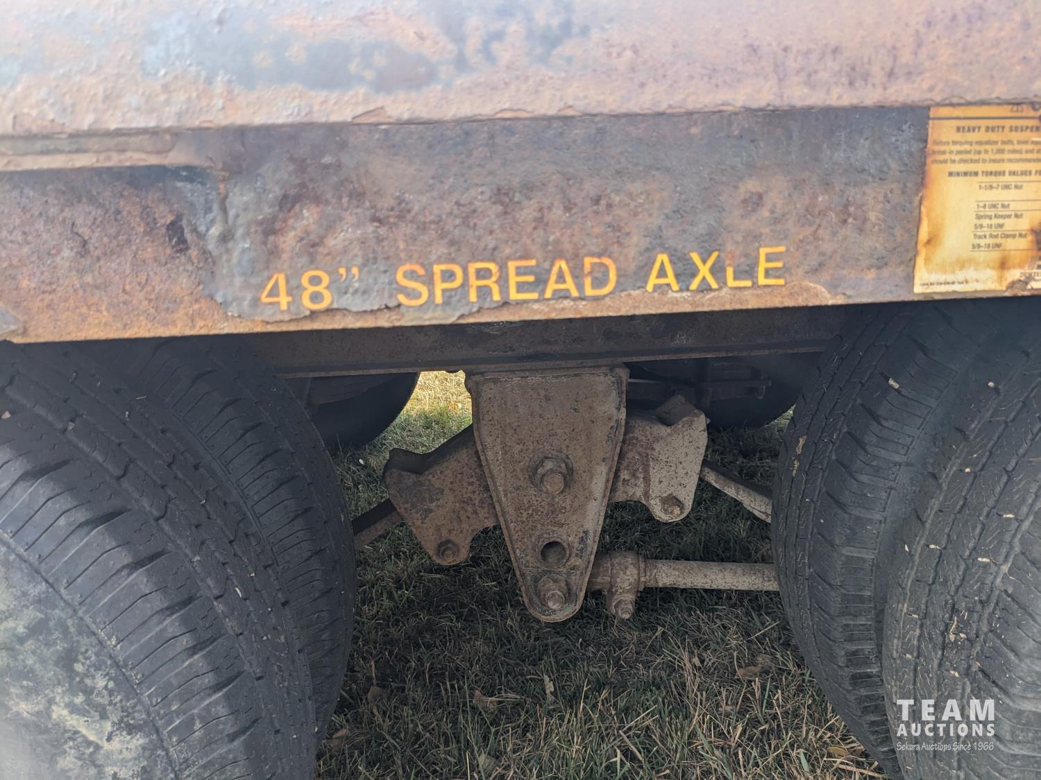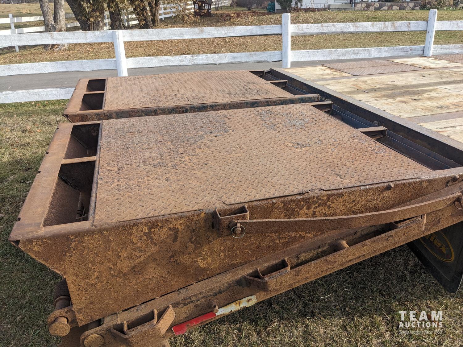 102 inch wide deck, 60 inch beaver tails, wood deck, electric brakes, spring suspension, tool / storage box, rub rails, stake pockets, mega spring assisted ramps, 10000 lb axles, 235/80R16 tires