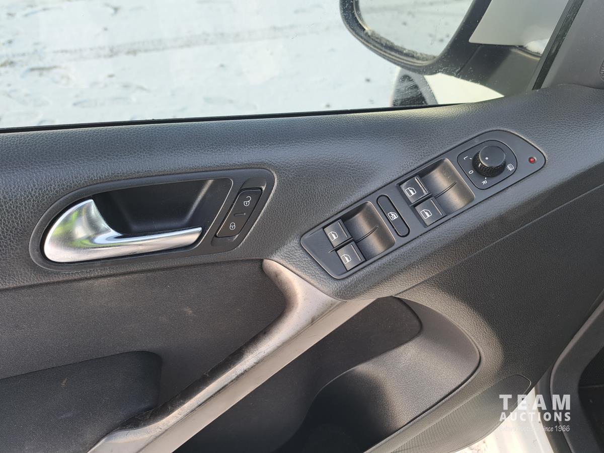 2.0 L, 4 cylinder, gas, 6 speed automatic transmission, P/W, P/L, A/C, heated mirrors, upgraded stereo, Automatic 4 Motion, cruise control, power mirrors, CD player, MP3, heated cloth front seats, rear fold down seats for access to back, front and rear cup holders, 12 volt power outlet at rear storage area, spare tire, rear hitch, full panel glass roof, 235/55R17 tires