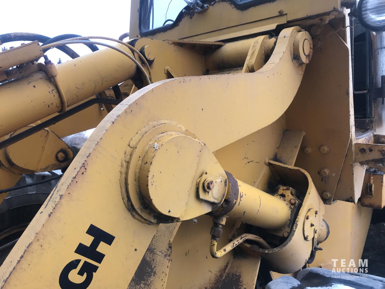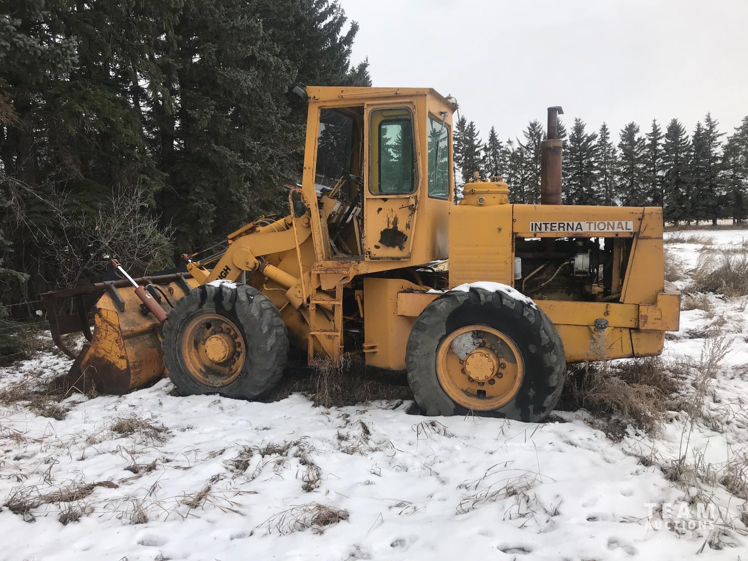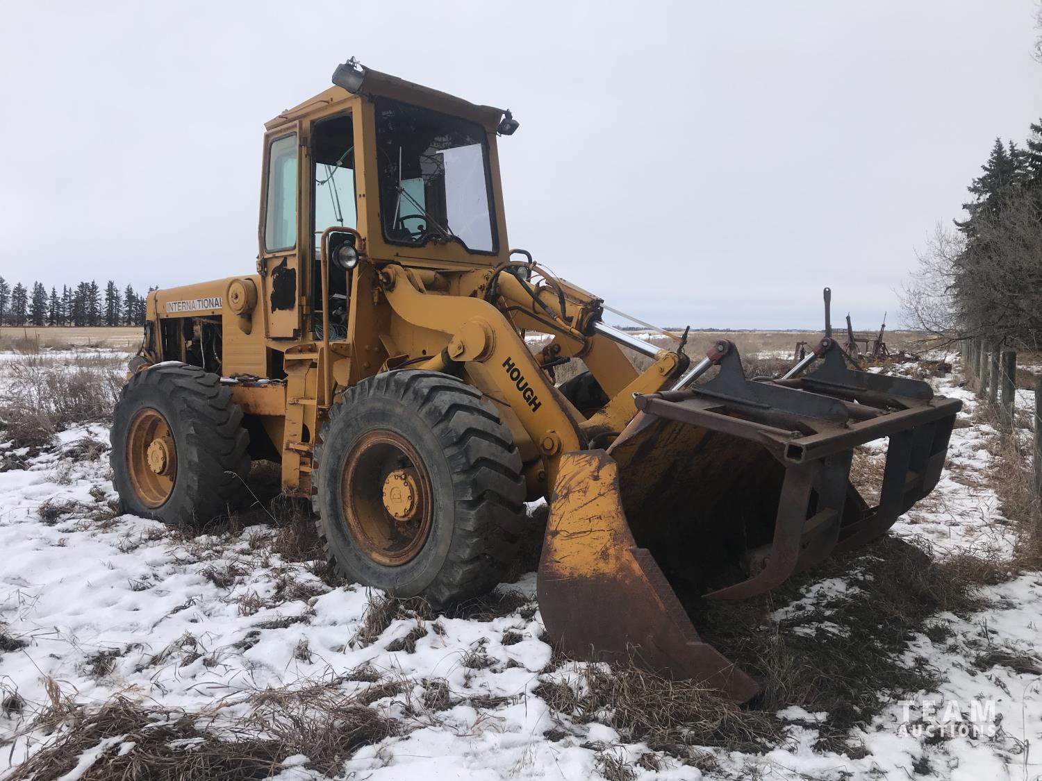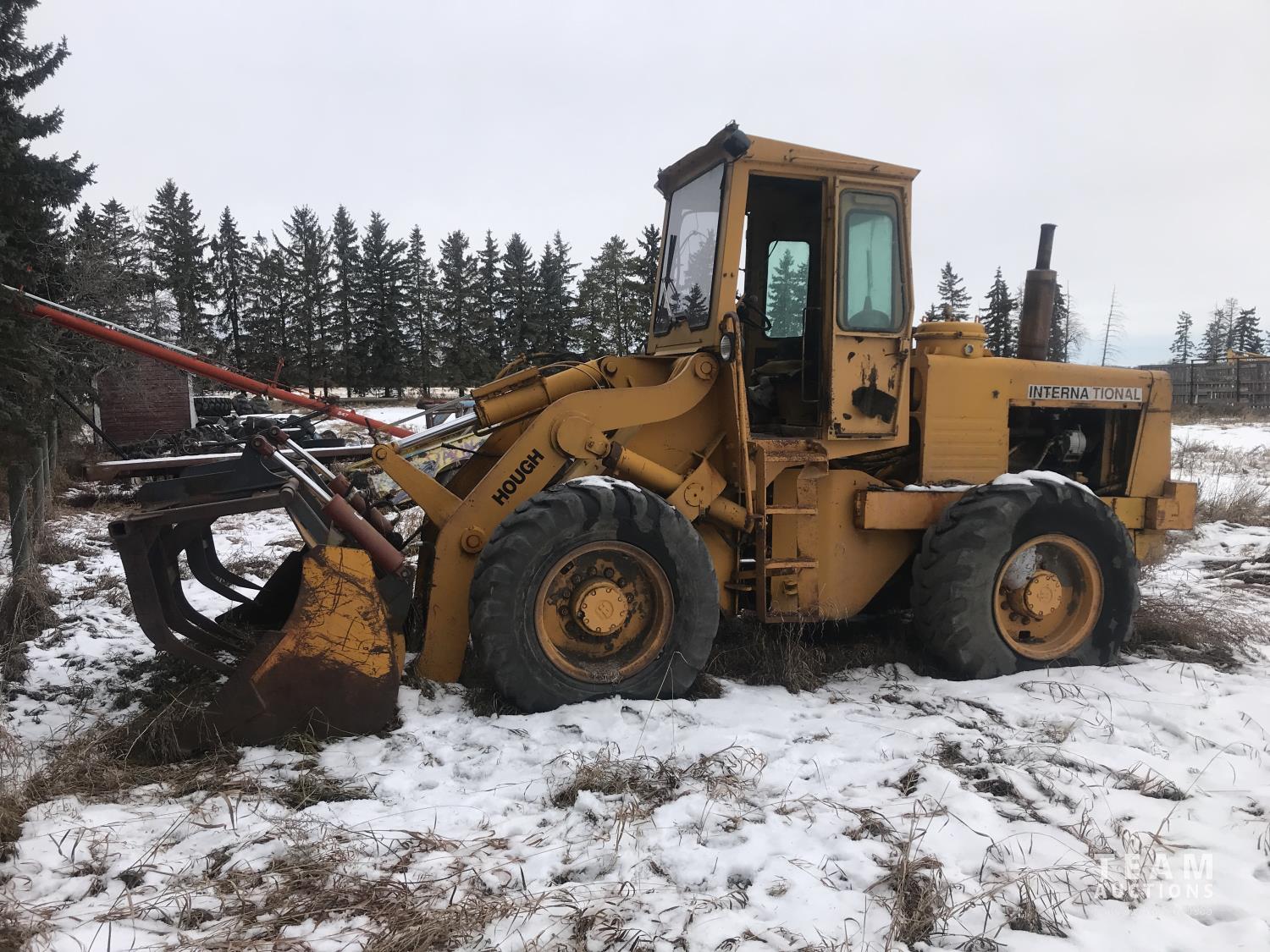 International diesel engine, 3 speed with hi/lo transmission, grapple bucket, 17.5-25 tires