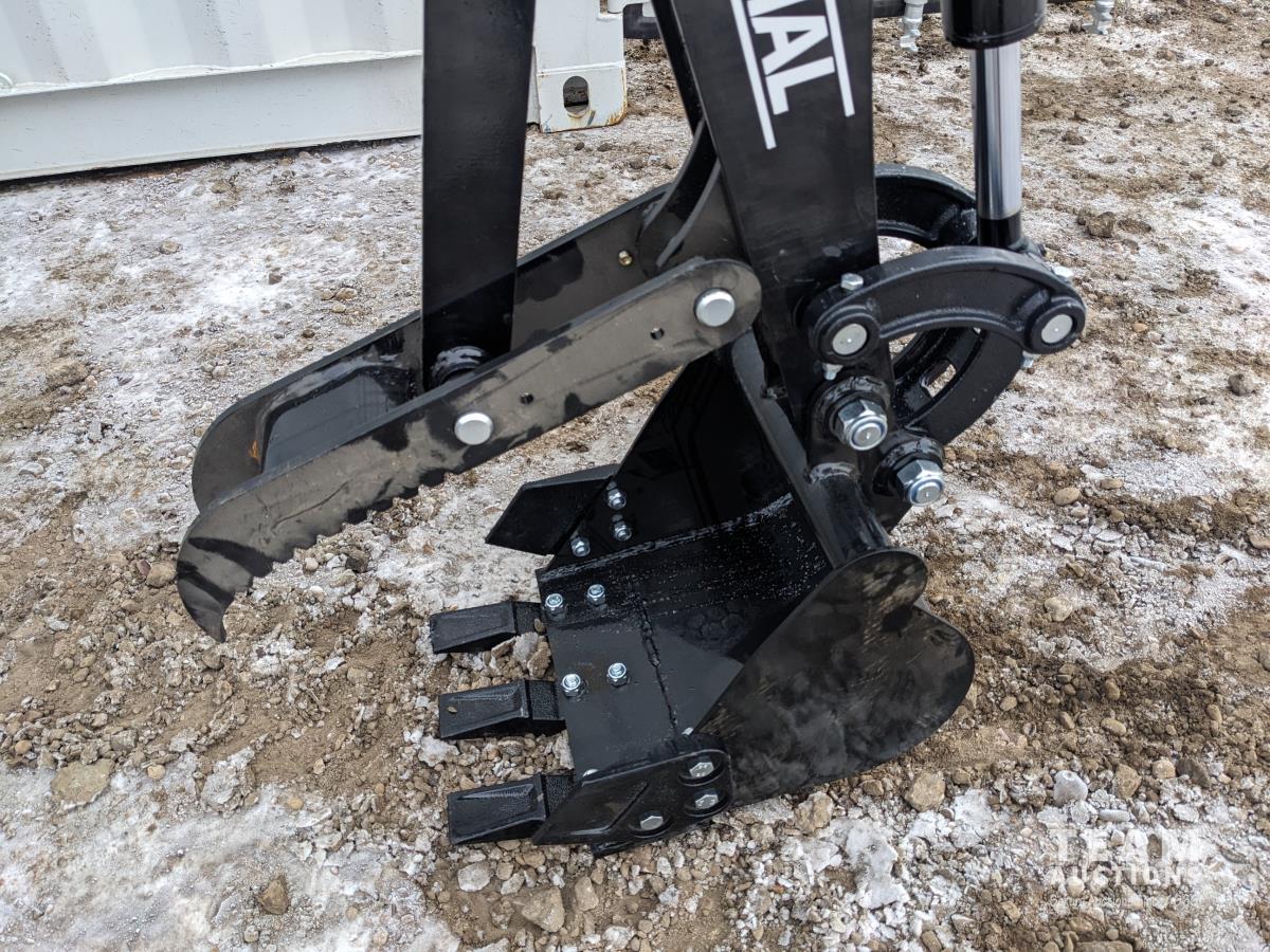 420 cc gas engine, 12 inch digging bucket, fixed thumb, 2 ft 8 inch stick, auxiliary hydraulics, 28 inch backfill blade, 6 inch wide tracks, 44 inches track length, canopy, LED light, battery disconnect, hydraulic oil gauge, electric start with battery, pull start option, joy sticks, hrs meter