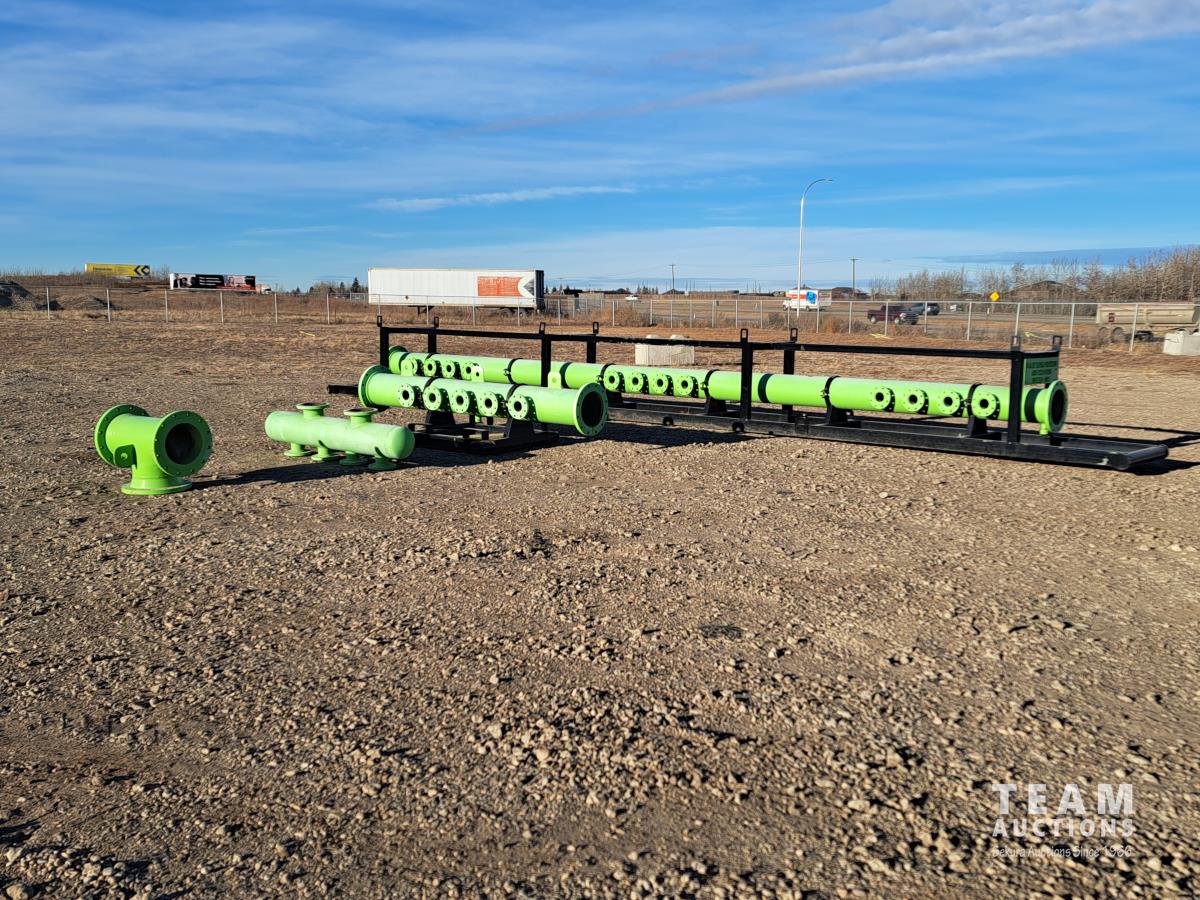 (1) - 35 ft long skids c/w 30 ft of manifold. 24 side outlets, 8 bolt 4 inch 150 and 12 inch 150 flanges, lifting hooks