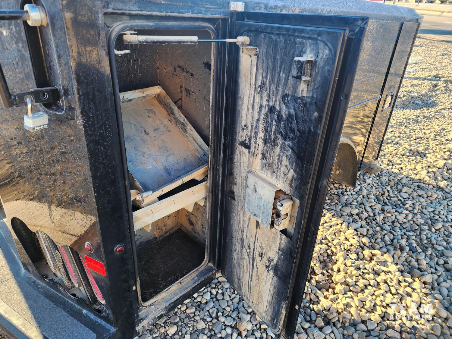83 inch x 7 ft, multiple tool boxes, cabinets with adjustable galvanized shelves, receiver hitch, LED light