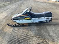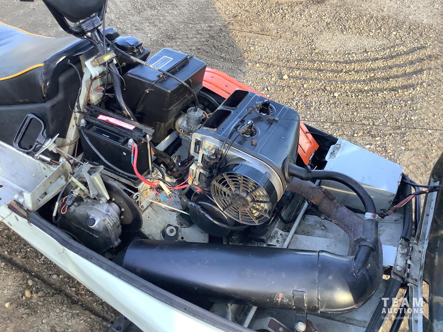 Rotax 2 cylinder, 496 cc fan cooled engine, electric start, slide suspension, ski skins, operators manual, starts and runs real nice