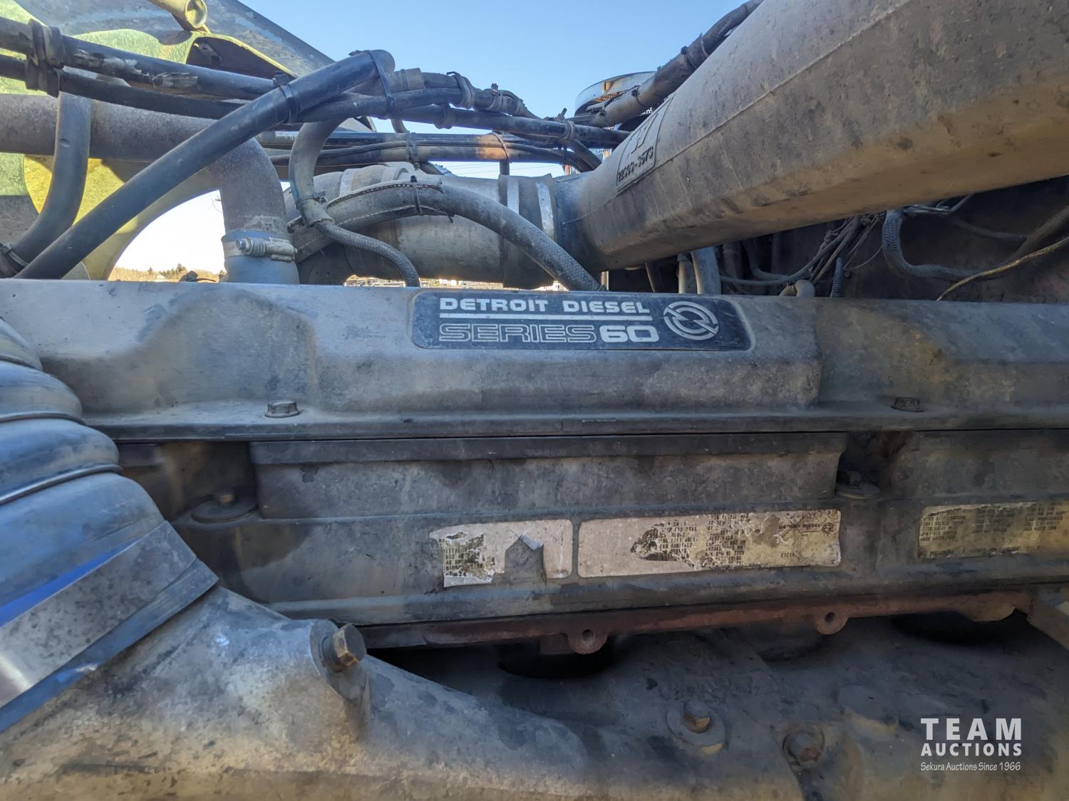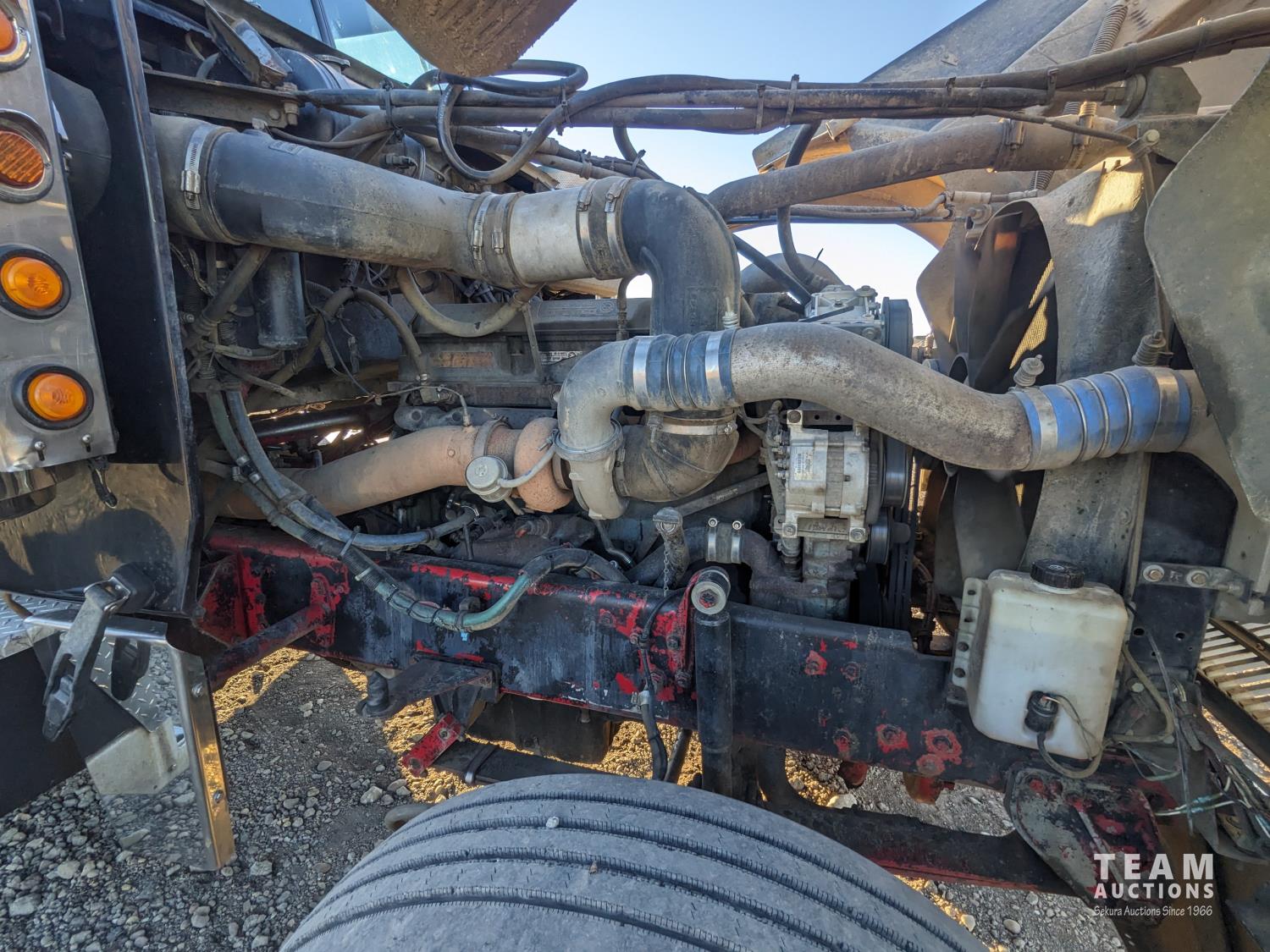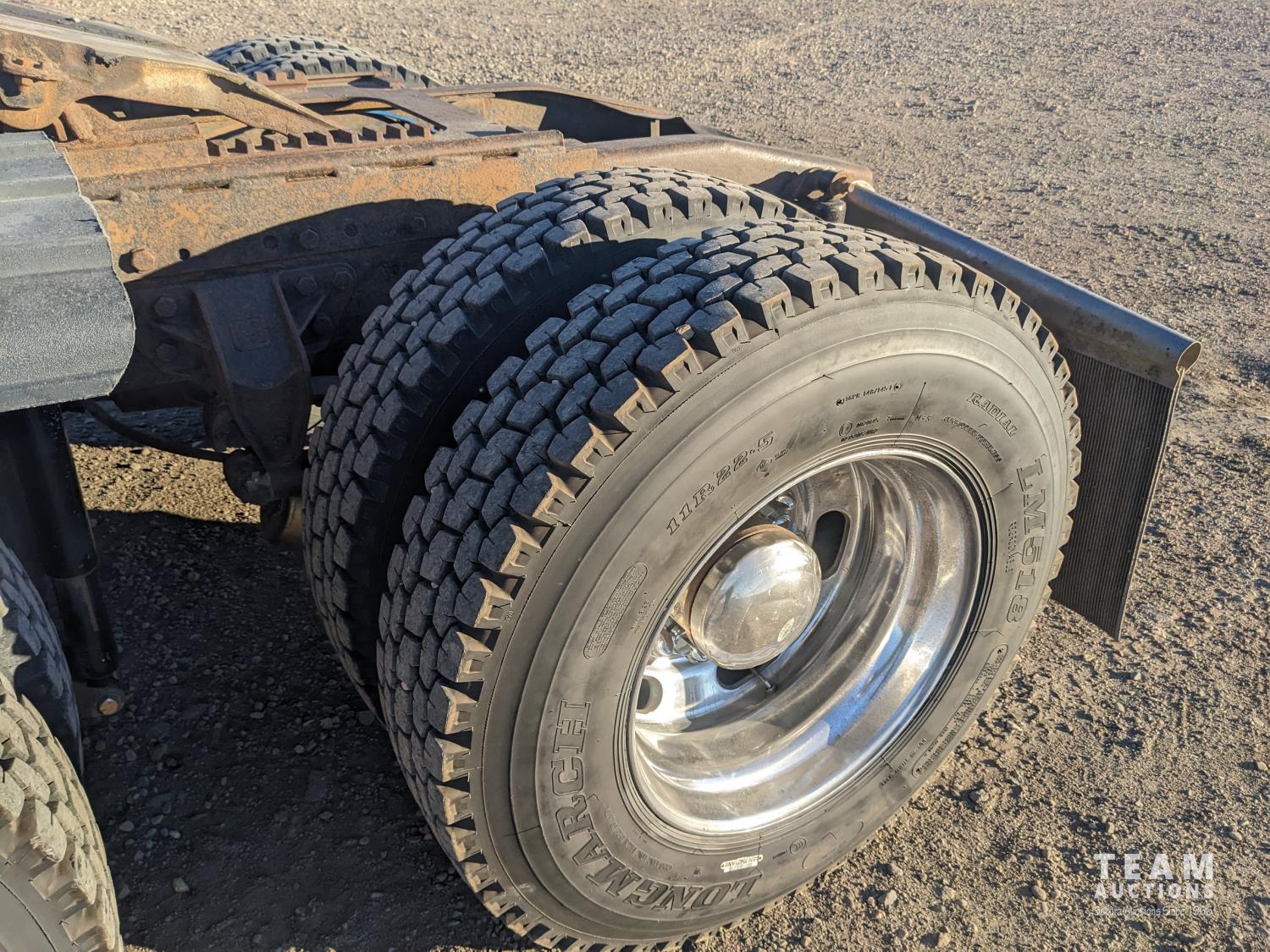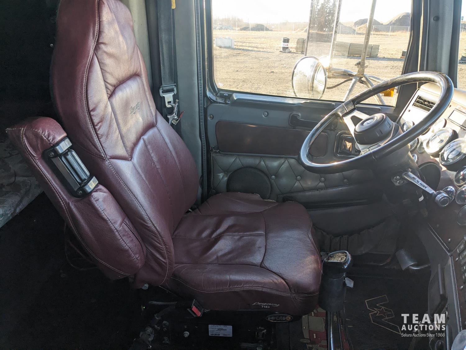 Detroit 60 SERIES 12 L 6 cylinder 500 HP diesel engine, engine brake, Eaton Fuller 13 speed manual transmission, flat top 48 inch removable, sleeper, A/C, aluminum headache rack, aluminum tool boxes, beacons, air ride cab, chain holders, air ride suspension, 12,000 lb front axle, 40,000 lb rear axles, diff lock, 3.90 ratio, all aluminum wheels, 11R22.5 tires
