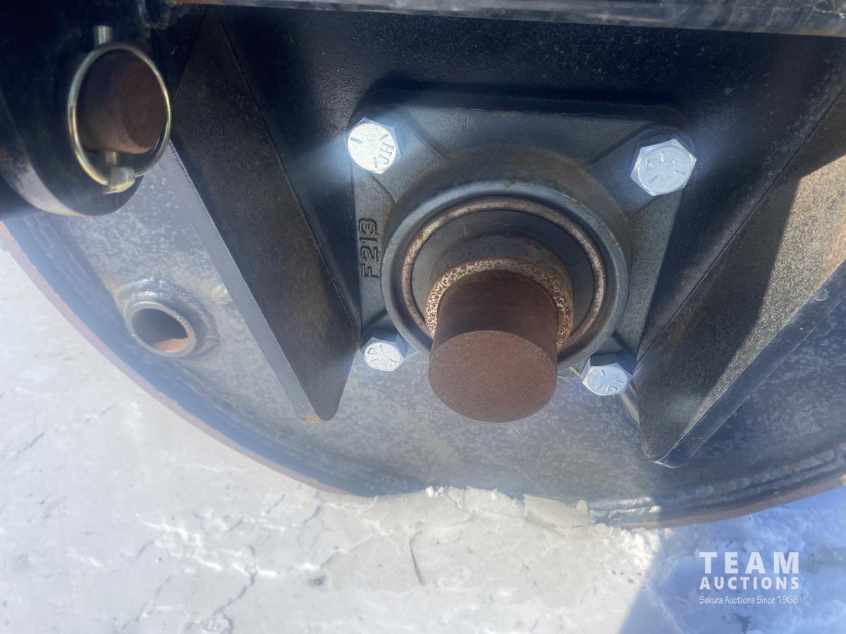 36 inch diameter, 3/4 inch thick, liquid fillable, (2) fill ports, hydraulic lift, transport kit, detachable hitch, folding transport hitch, delivery options available, warranty expires April 2024.