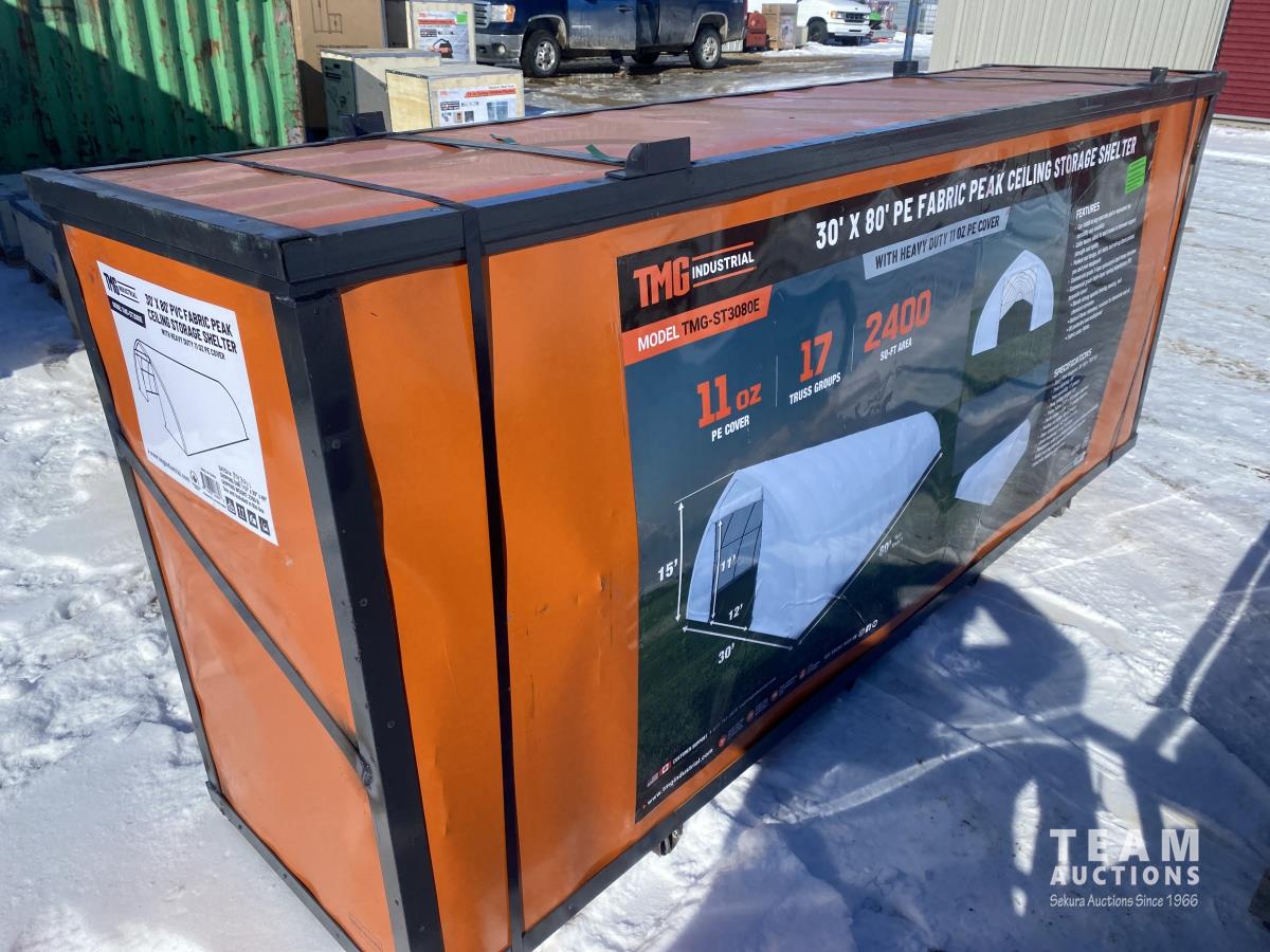 47 TMG Industrial TMG-ST3080 30 Ft X 80 Ft Peak Ceiling Storage Shelter (Unused)
