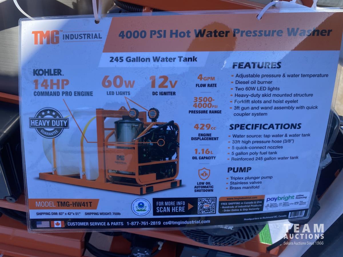 78 TMG Industrial TMG-HW41T 4000 PSI Hot Water Pressure Washer with 245 Gallon Water Tank (Unused)