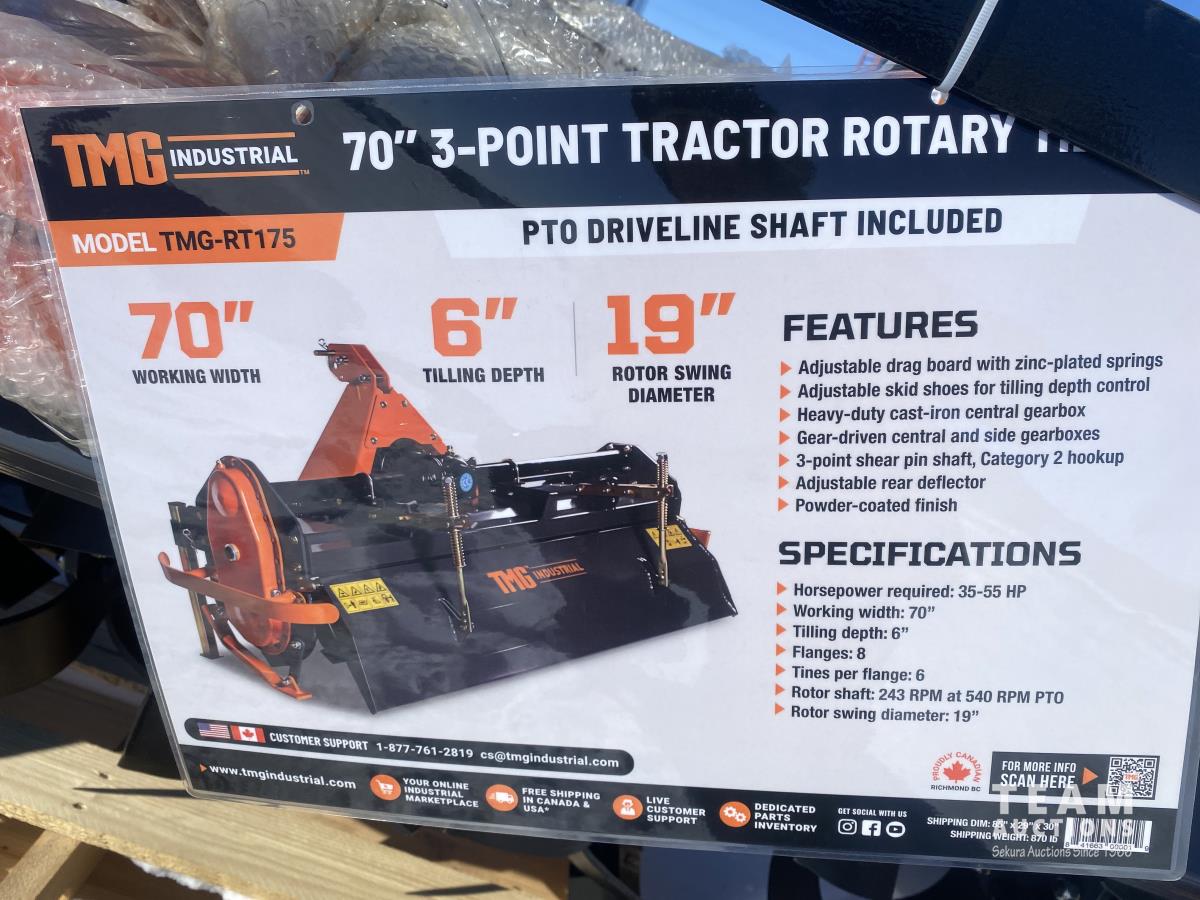 114 TMG Industrial TMG-RT175 70 Inch 3-Point Hitch Rotary Tiller (Unused)