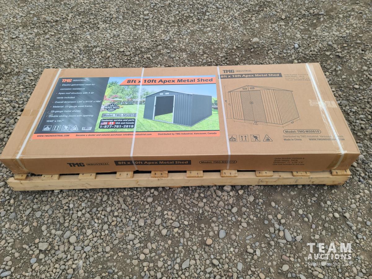 41 TMG Industrial TMG-MS0810 8 Ft X 10 Ft Galvanized Apex Roof Metal Shed (Unused)