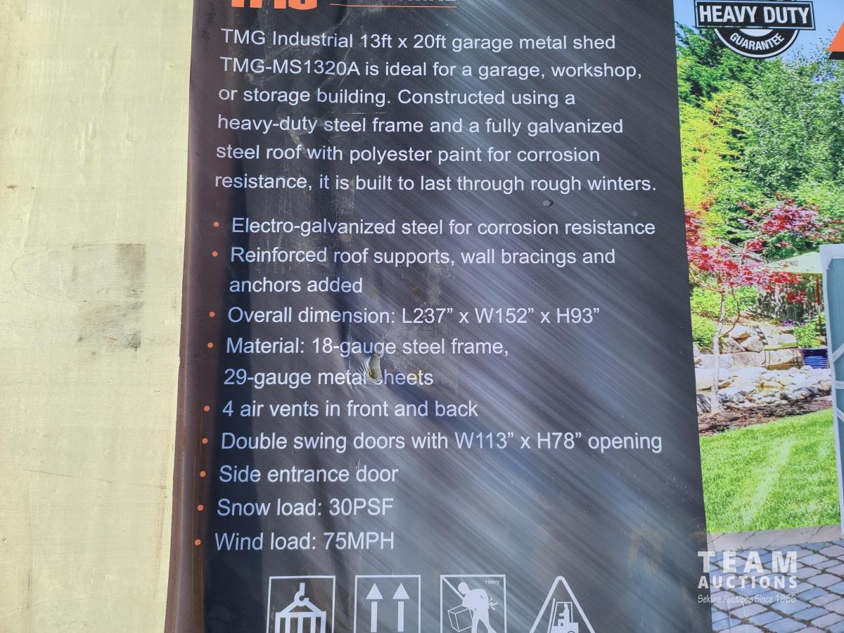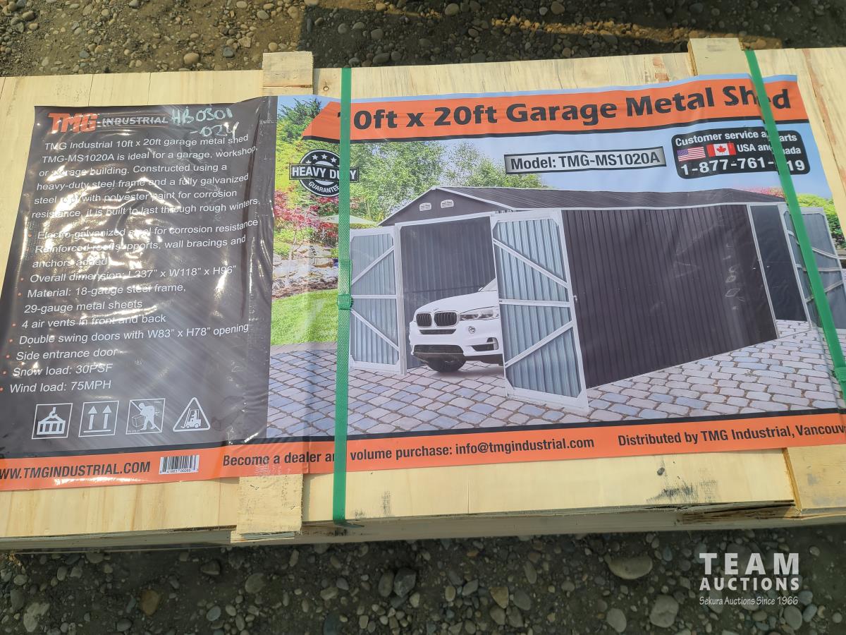 43 TMG Industrial TMG-MS1020A 10 Ft X 20 Ft Metal Garage Shed with Double Front Doors (Unused)