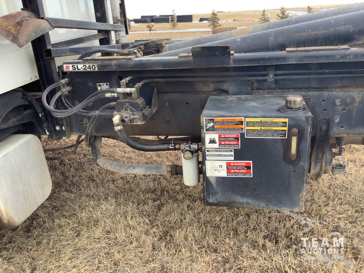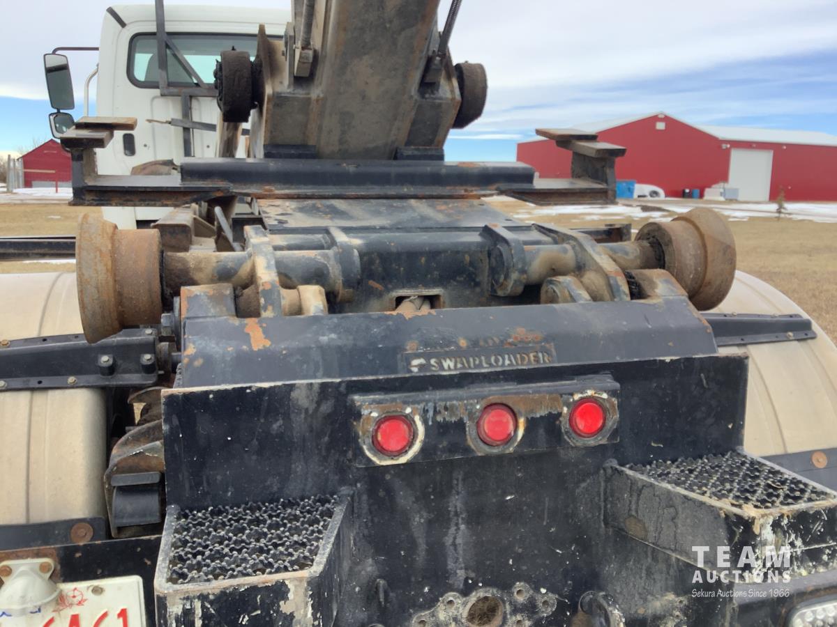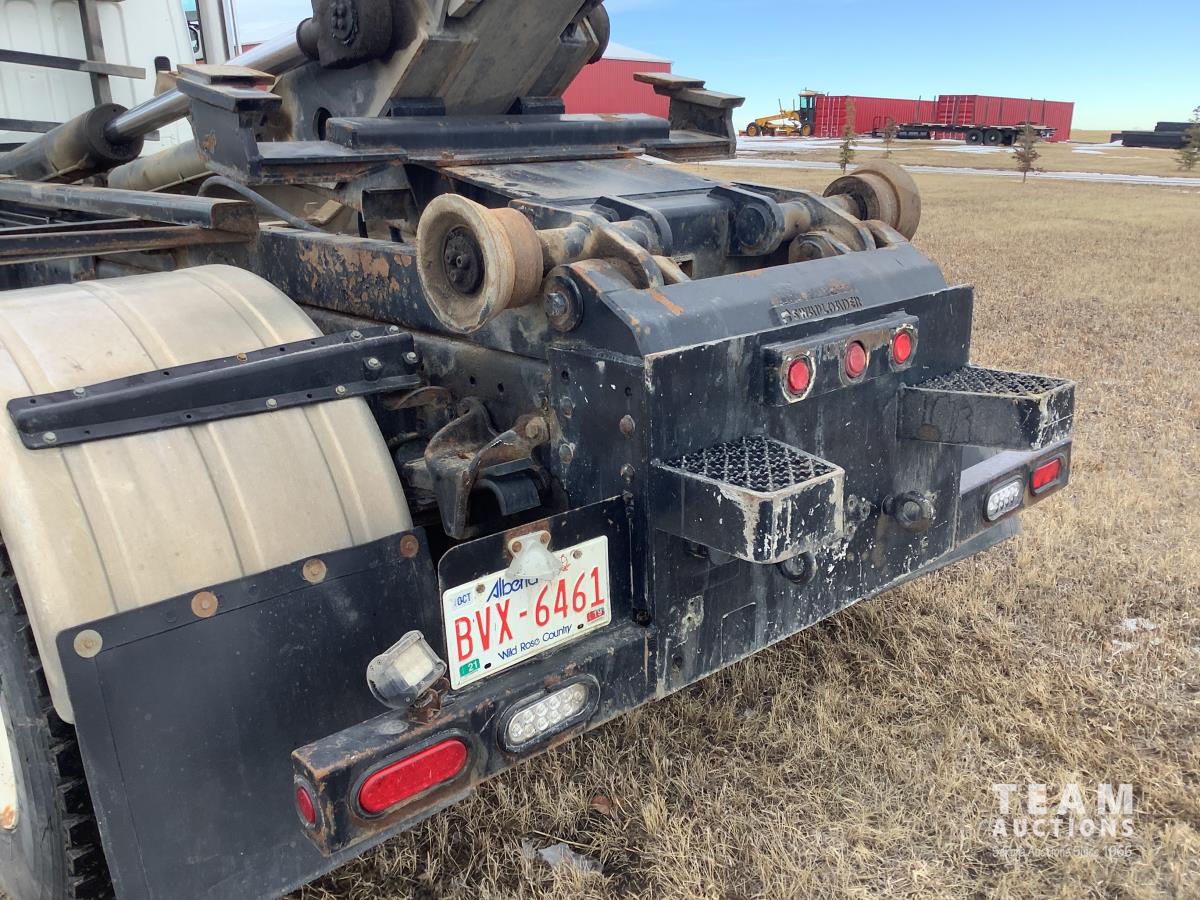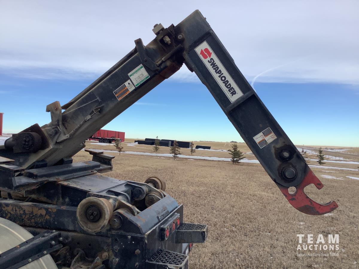 Caterpillar C7 7.2 L 6 cylinder Allison automatic transmission, A/C, trailer air valve, Swamp Loader SL240 roll off deck, spring suspension, 14,000 lb front axle, 23,000 lb rear axles, diff lock, three passenger seat with under seat storage, air brakes, 11R22.5 tires