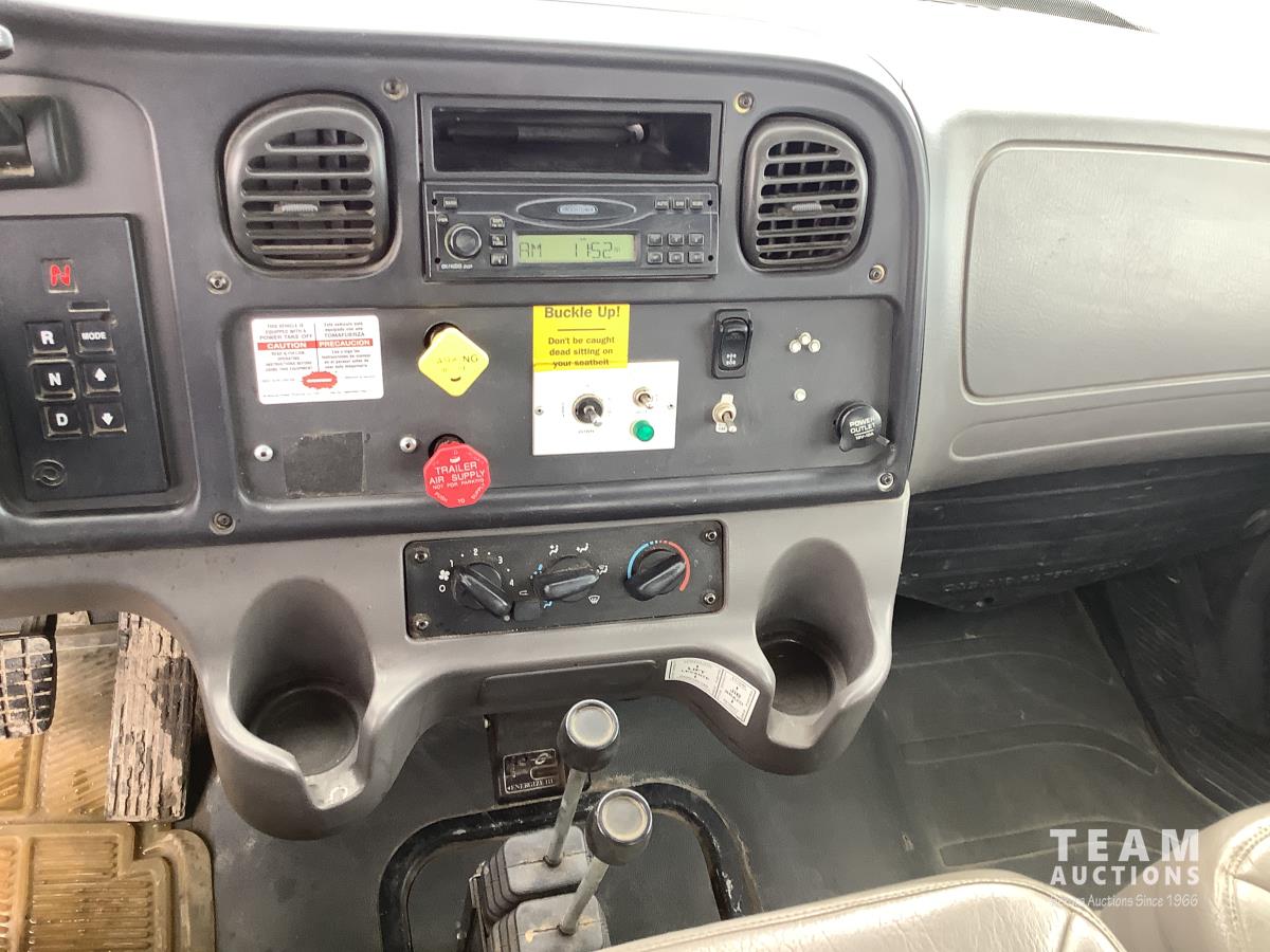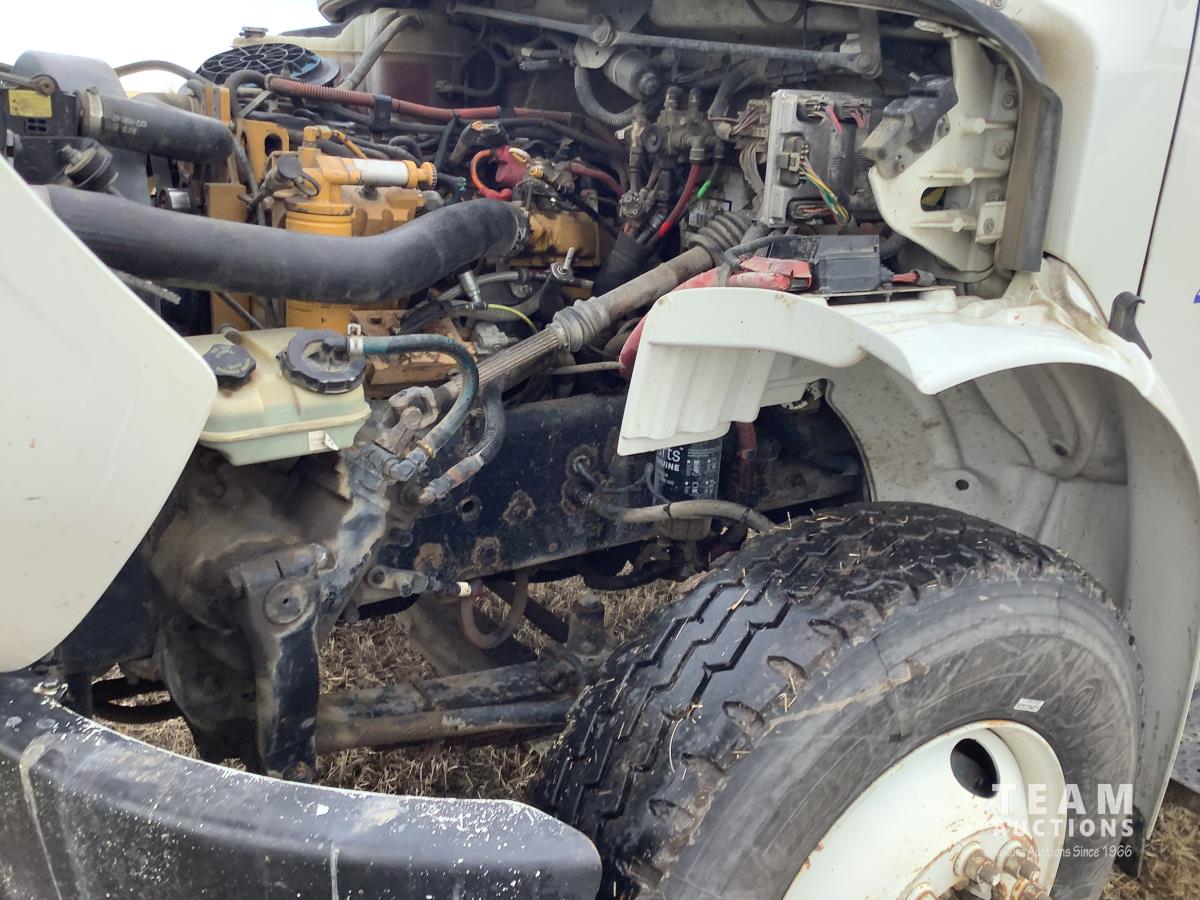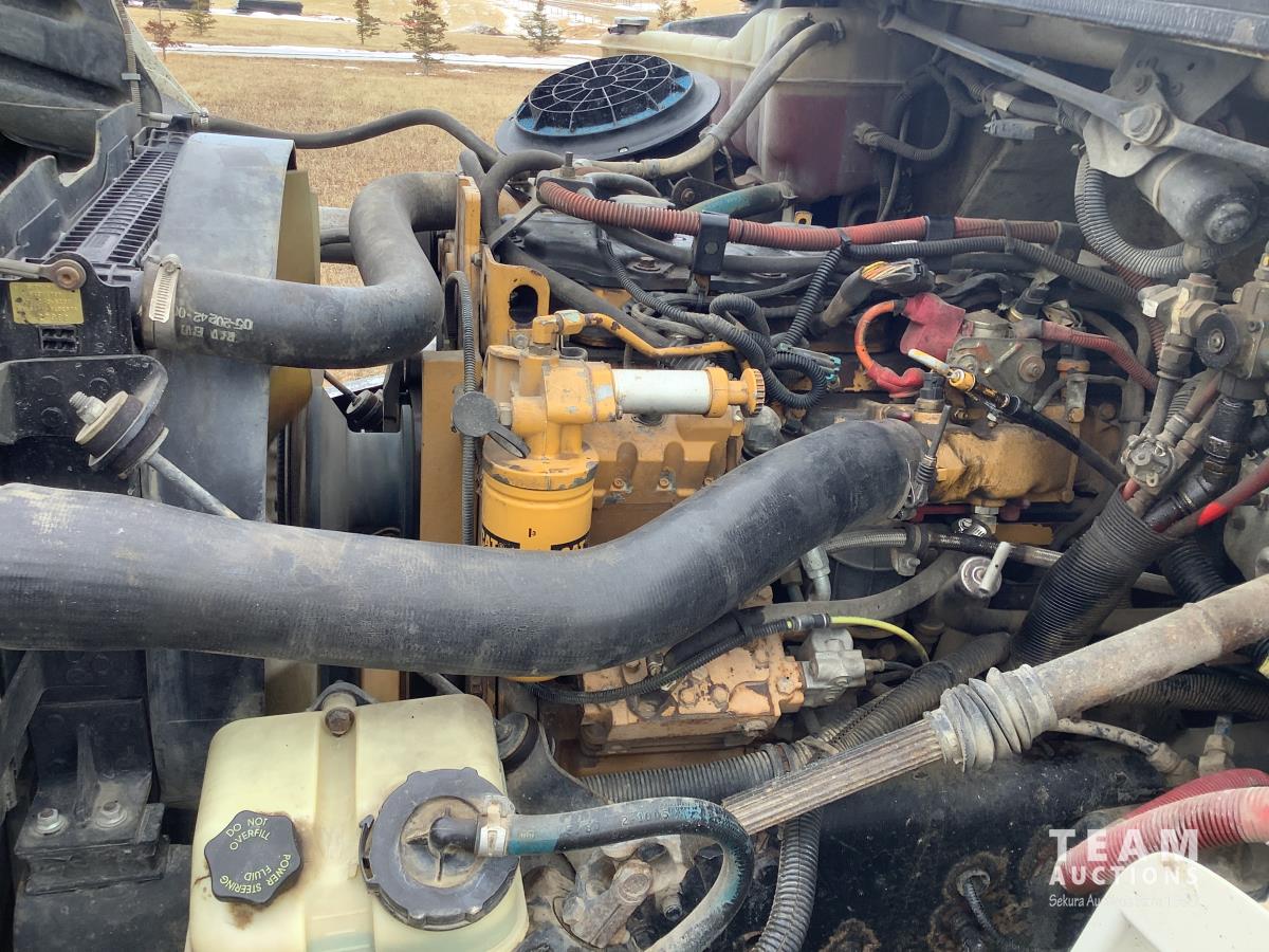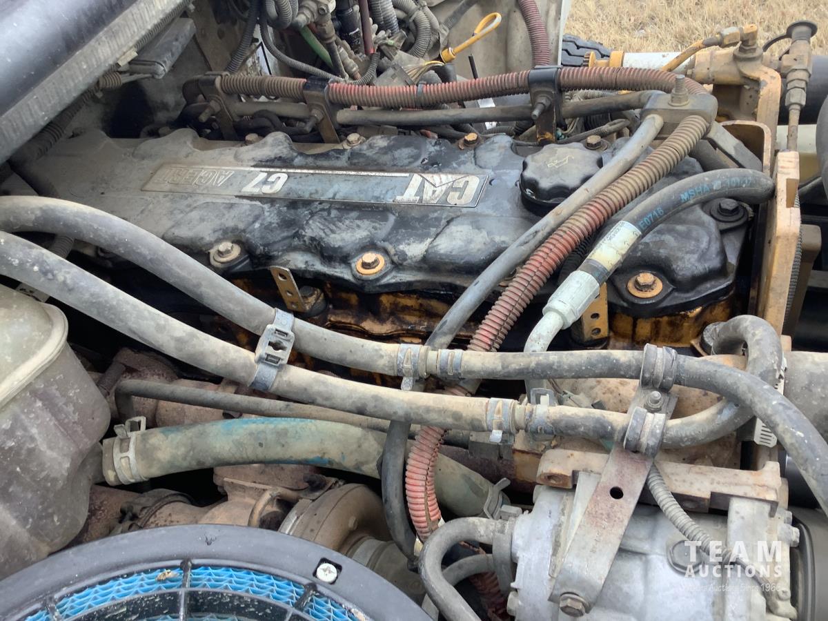 Caterpillar C7 7.2 L 6 cylinder Allison automatic transmission, A/C, trailer air valve, Swamp Loader SL240 roll off deck, spring suspension, 14,000 lb front axle, 23,000 lb rear axles, diff lock, three passenger seat with under seat storage, air brakes, 11R22.5 tires