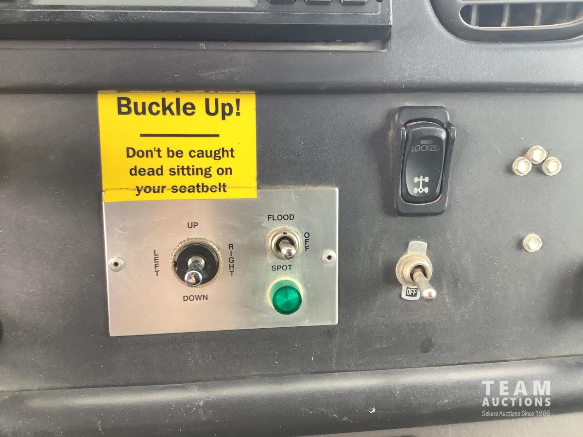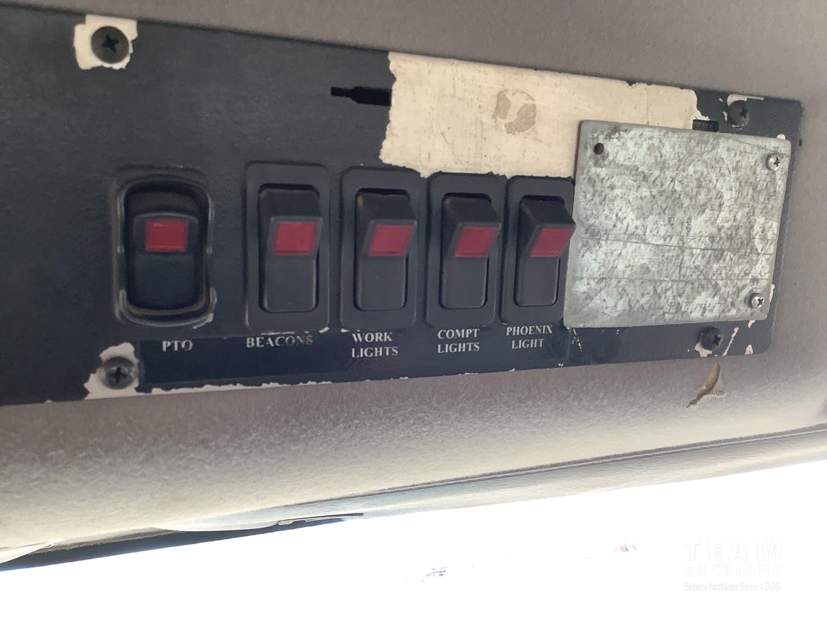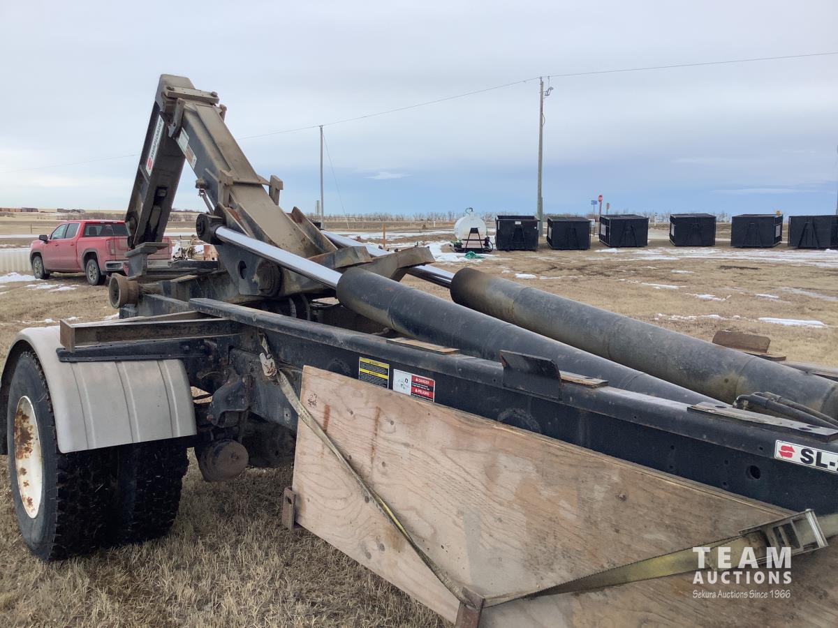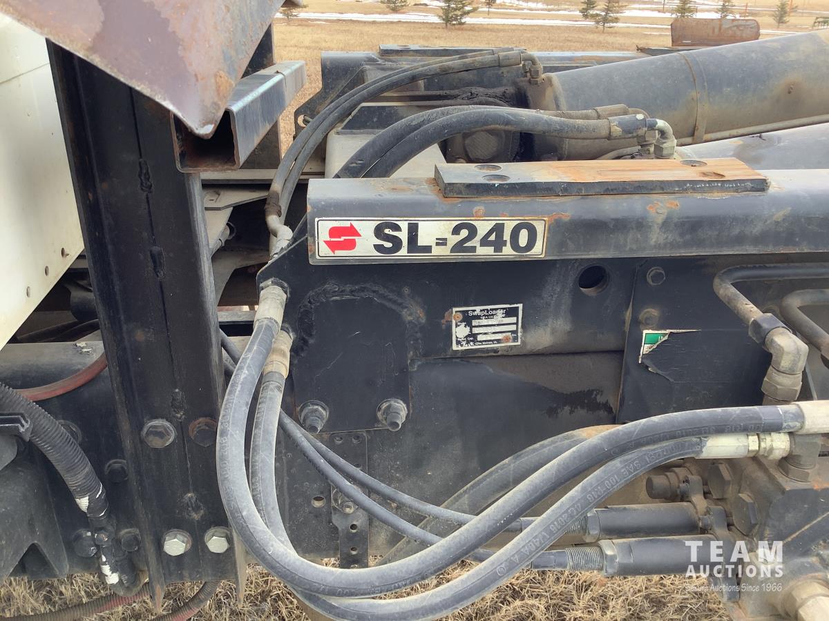 Caterpillar C7 7.2 L 6 cylinder Allison automatic transmission, A/C, trailer air valve, Swamp Loader SL240 roll off deck, spring suspension, 14,000 lb front axle, 23,000 lb rear axles, diff lock, three passenger seat with under seat storage, air brakes, 11R22.5 tires
