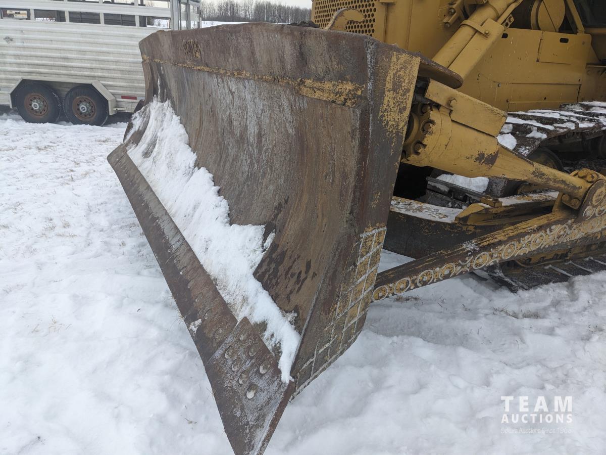 13 ft manual angle blade, twin tilts, cab, sweeps, 3 speed power shift, Carco 80 Winch, drawbar, 24 inch pads