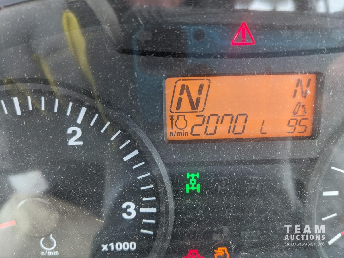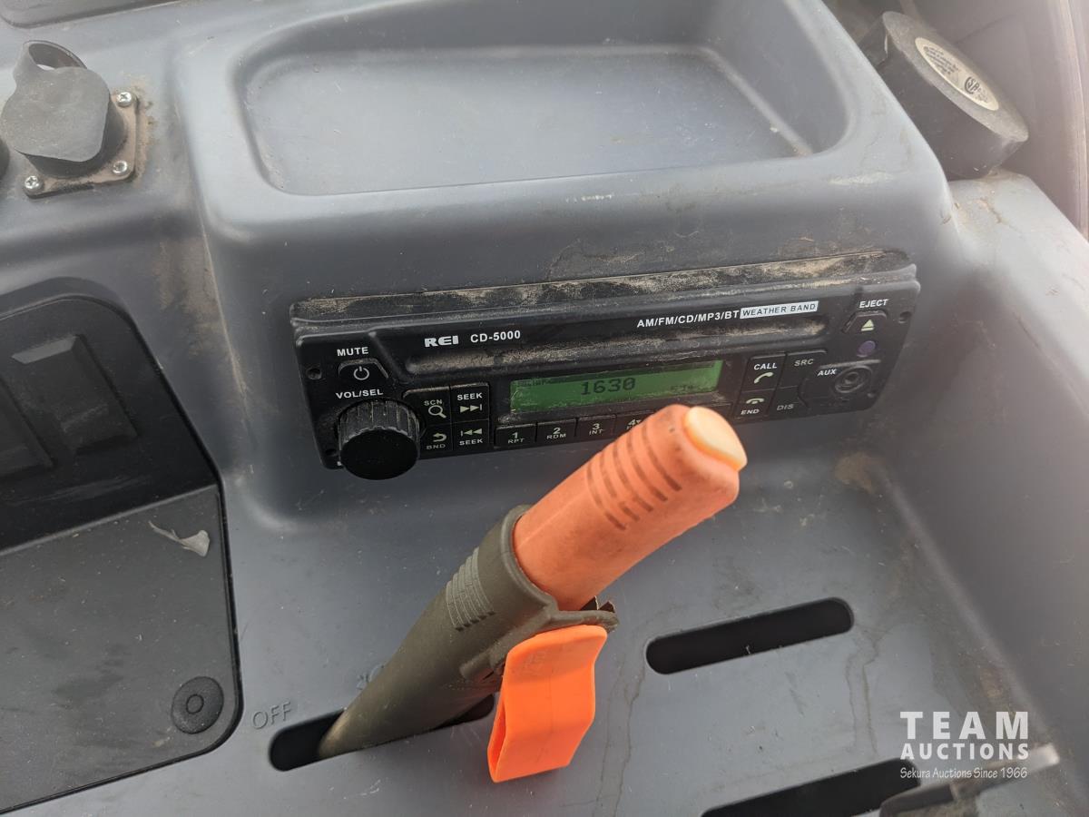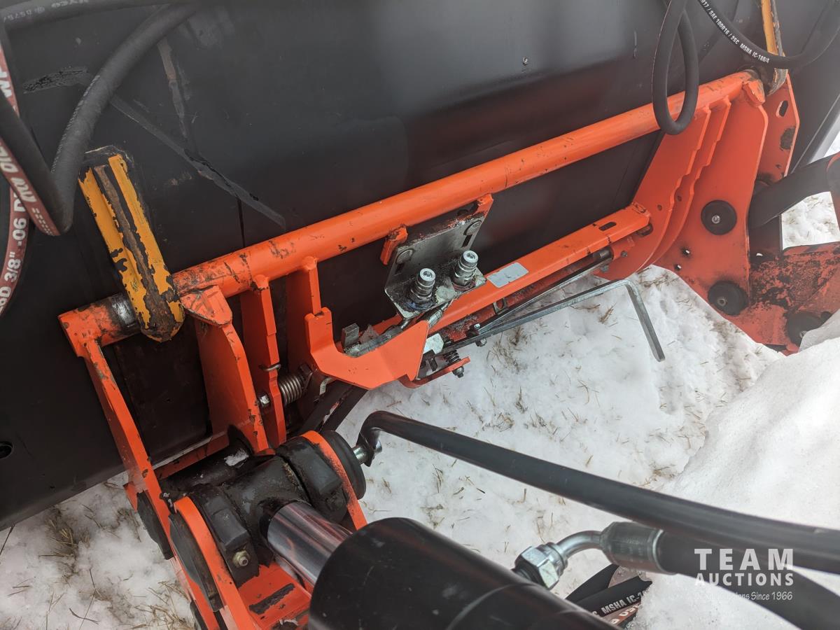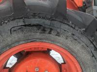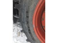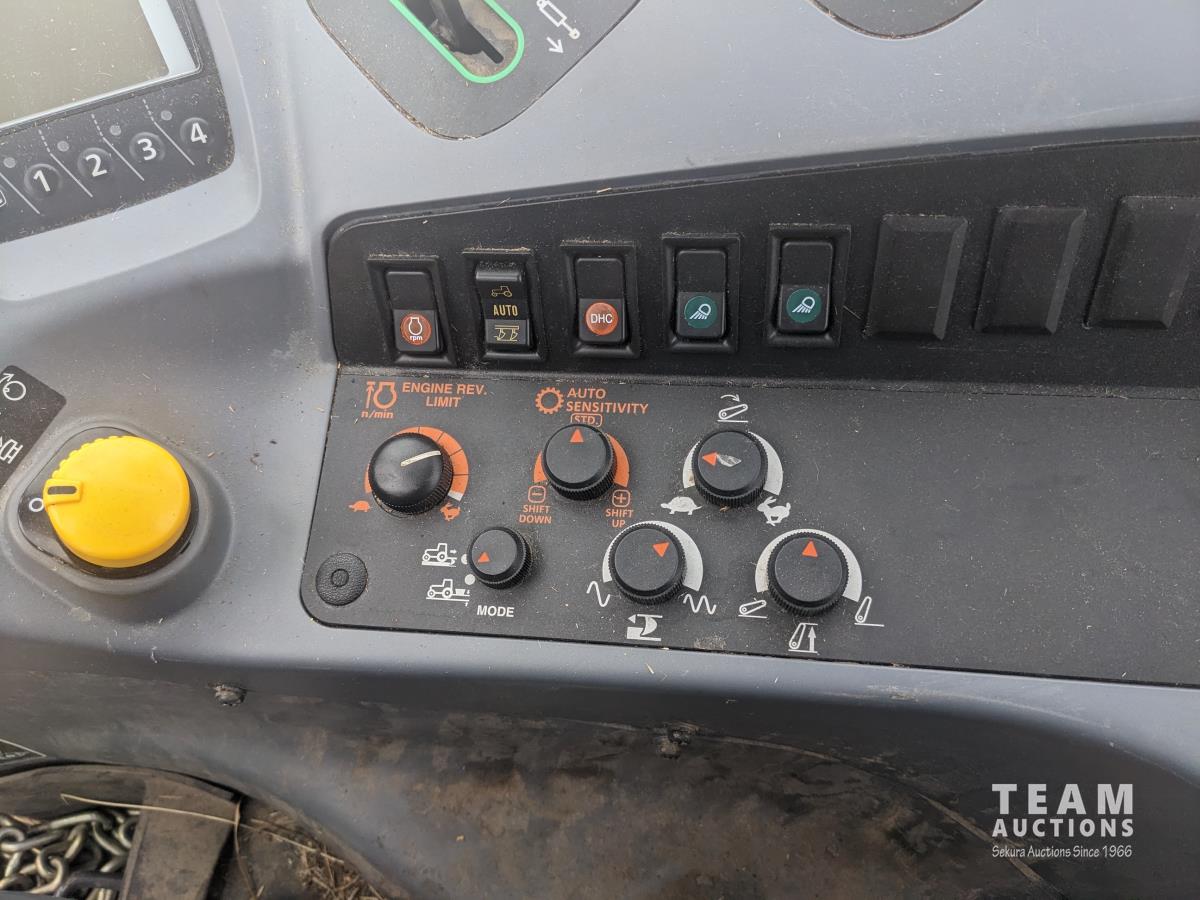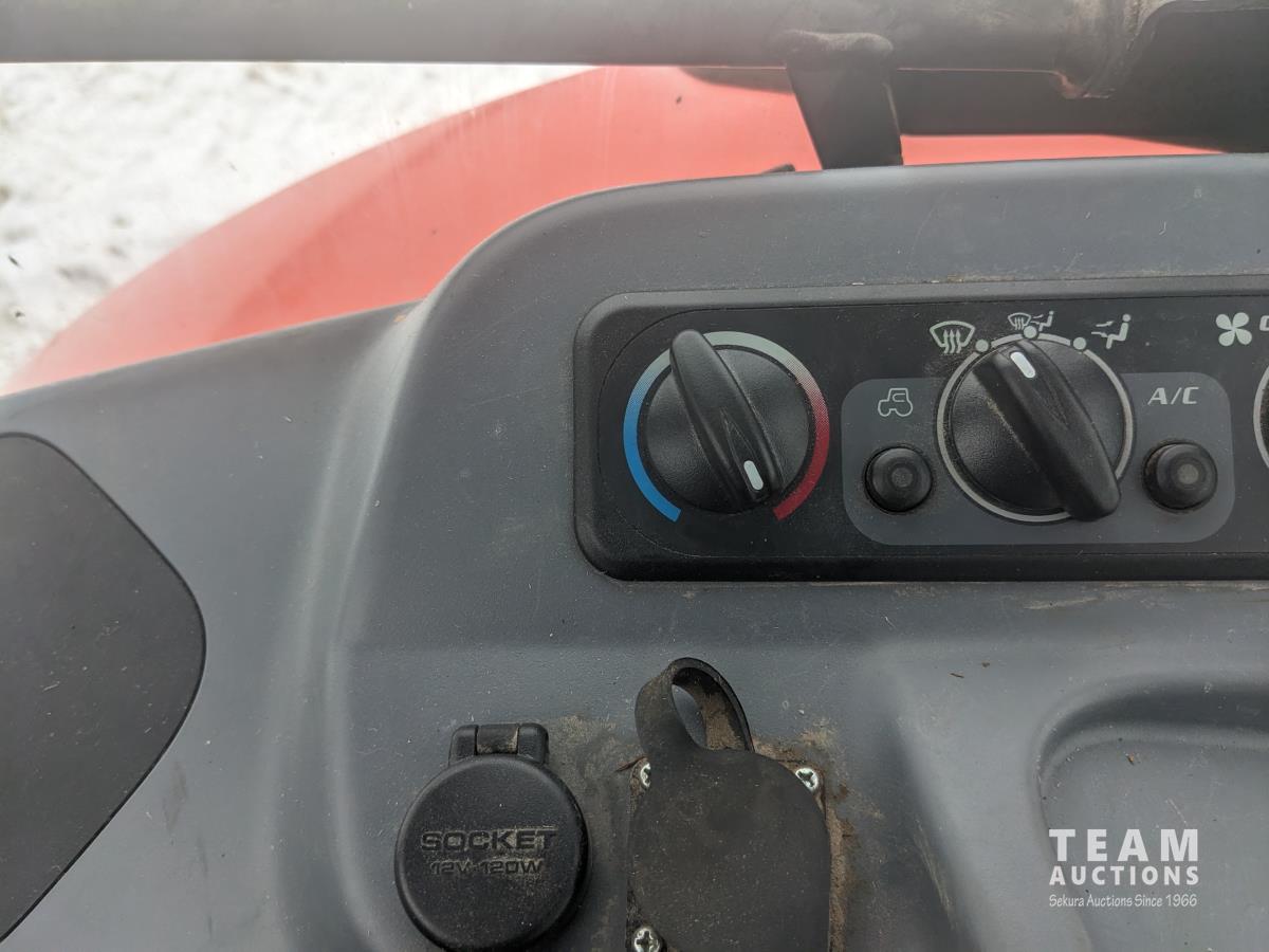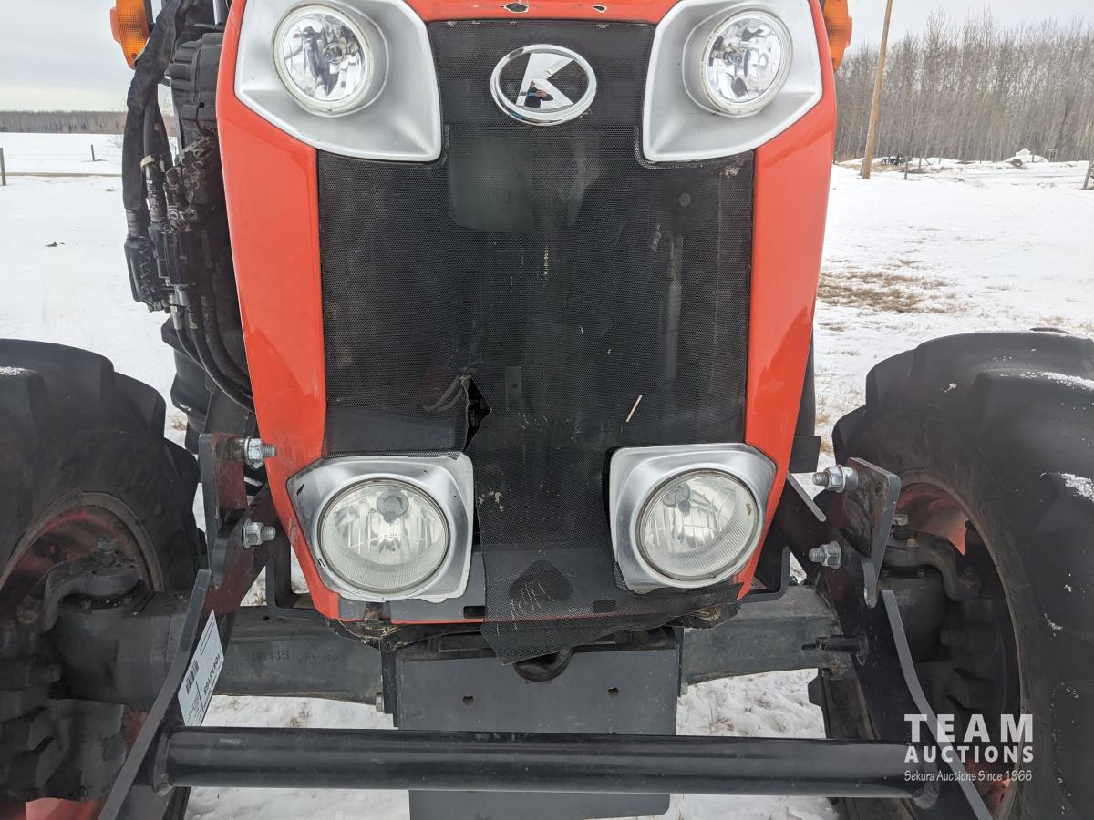 Kubota M56 loader, Q/A, 96 inch bucket, grapple, mid mount hydraulic connection, Kubota 6.1 L 4 125 HP, engine, 108 PTO HP, 24 speed Intelli-Shift partial power shift transmission, cab, left hand reverser, rear differential lock, joystick, A/C, radio, buddy seat, 540/1000 PTO, 3 point hitch, 3 point hitch exterior control, 2 rear hydraulic outlets, rear wheel weights, 420/70R24 front tires, 520/70R38 rear tires