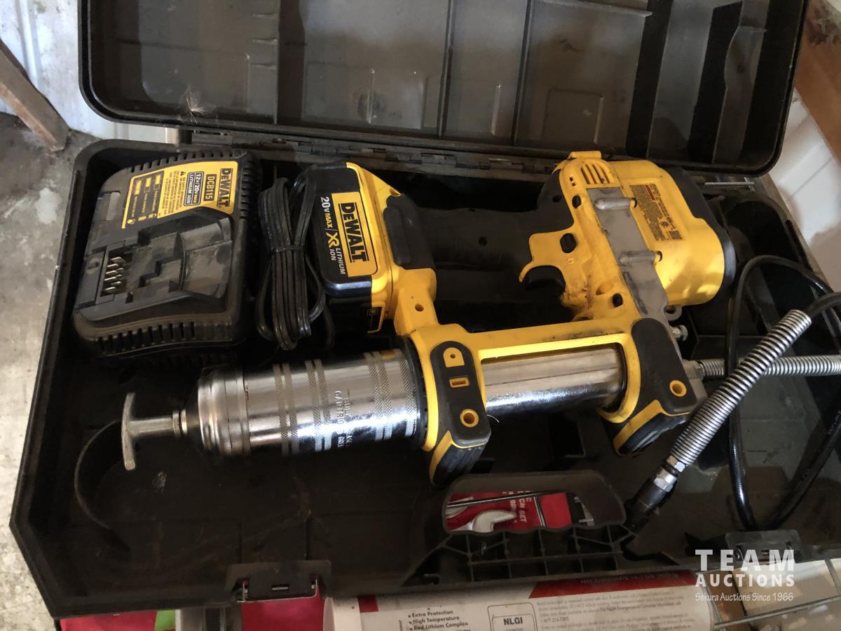Cordless 20V DeWalt grease gun, 20V DeWalt Sawzall, (1) battery (1) charger, Ingersoll air hammer