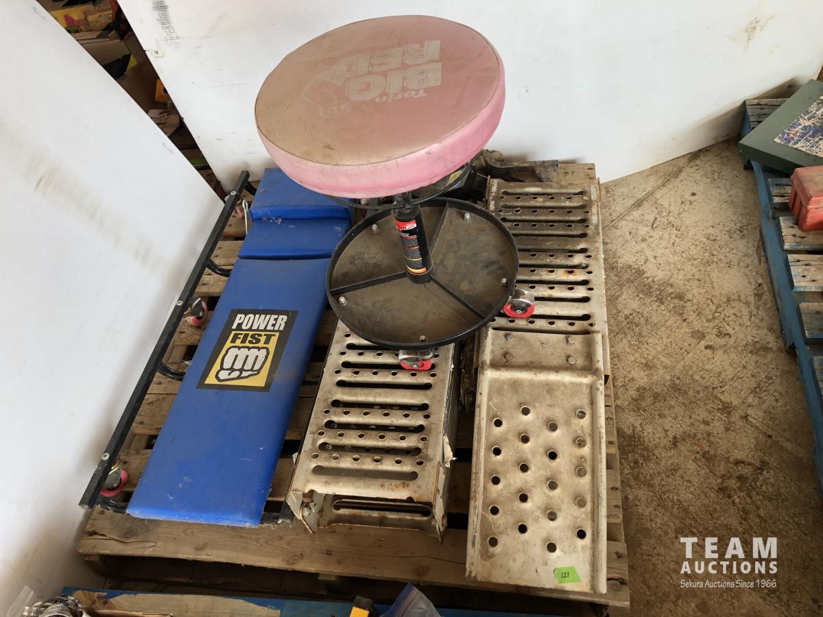 47 Mechanics Creeper & Stool, Set of Folding Ramps, (2) Hitches