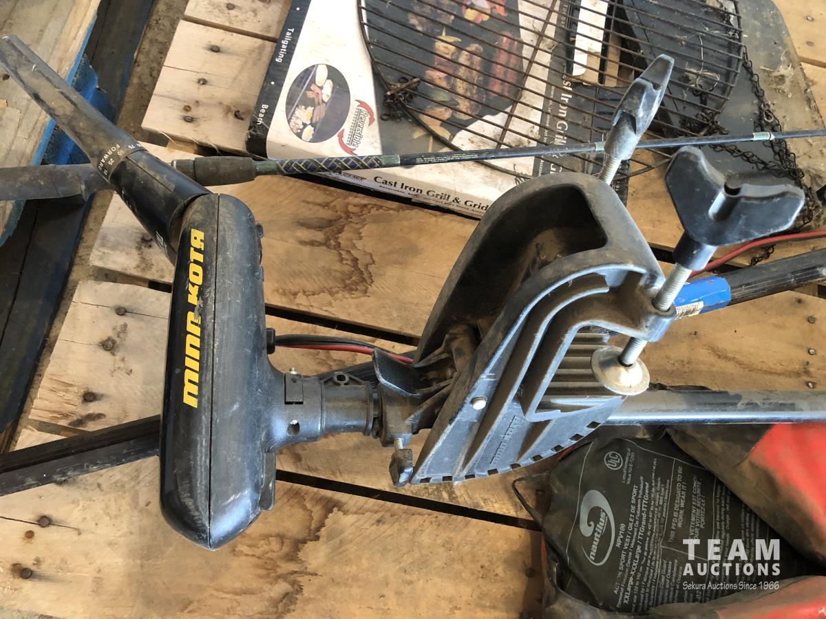 20 Mini Kota Maxxum Trolling Motor, Fishing Rod & Net, Life Jacket, Portable Grill