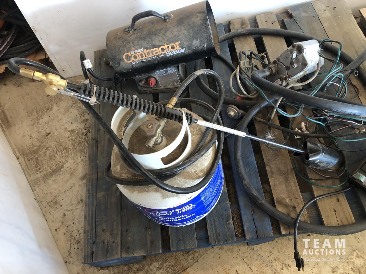 Mr Heater diesel space heater 50,000-85,00 BTU, tiger torch with propane bottle, Intermatic outdoor timer, 12V transfer fuel pump