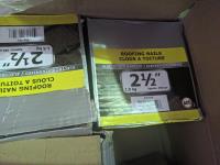 quick drive screws, assorted washers, joist hangers, various sized nails, 2-1/2" roofing nails, air gun coil nails, staples