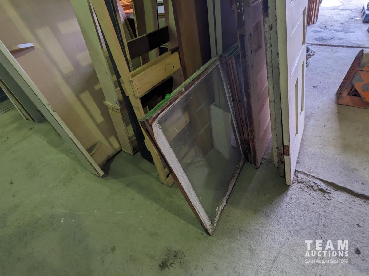 (4) vintage doors, (3) vintage mirrors (2) slim interior doors, small roll of lino, pieces of countertop
