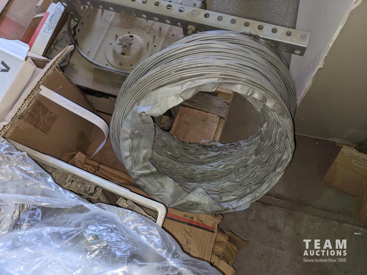 Qty of light shades, ridge cap shingles, door closers, electrical breaker, various hardware, cable kits, 8 inch and 6 inch, flexible duct, perma barrier, garage door opener power heads