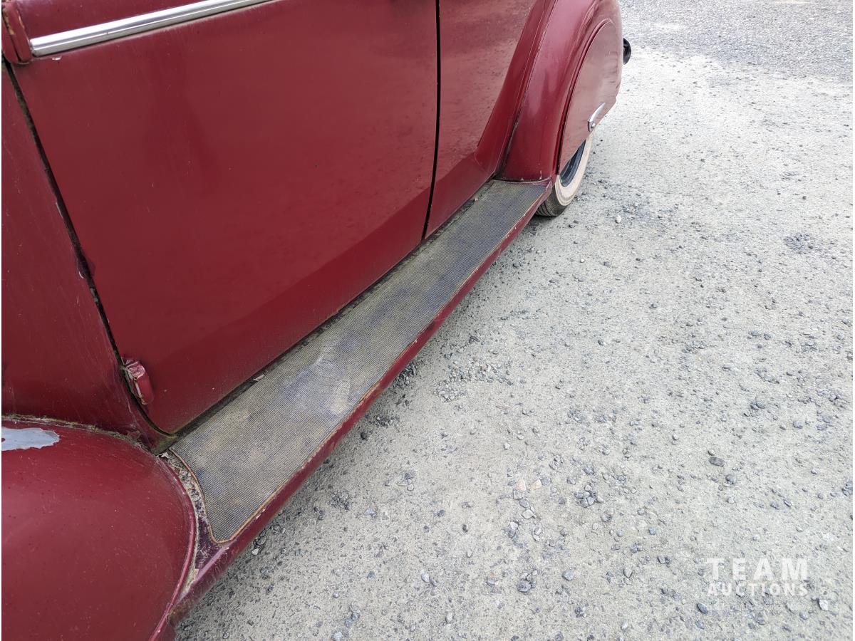 6 cylinder Flathead, gas, 3 speed manual transmission, overdrive trans , 8.00-16 tires