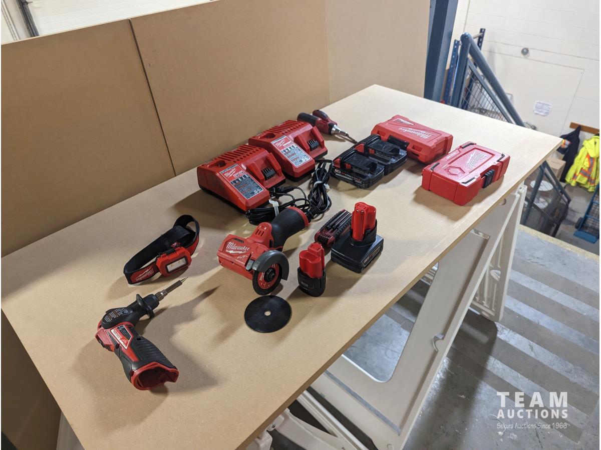 Soldering iron, cutoff tool (2) chargers, (2) batteries and miscellaneous hand tools